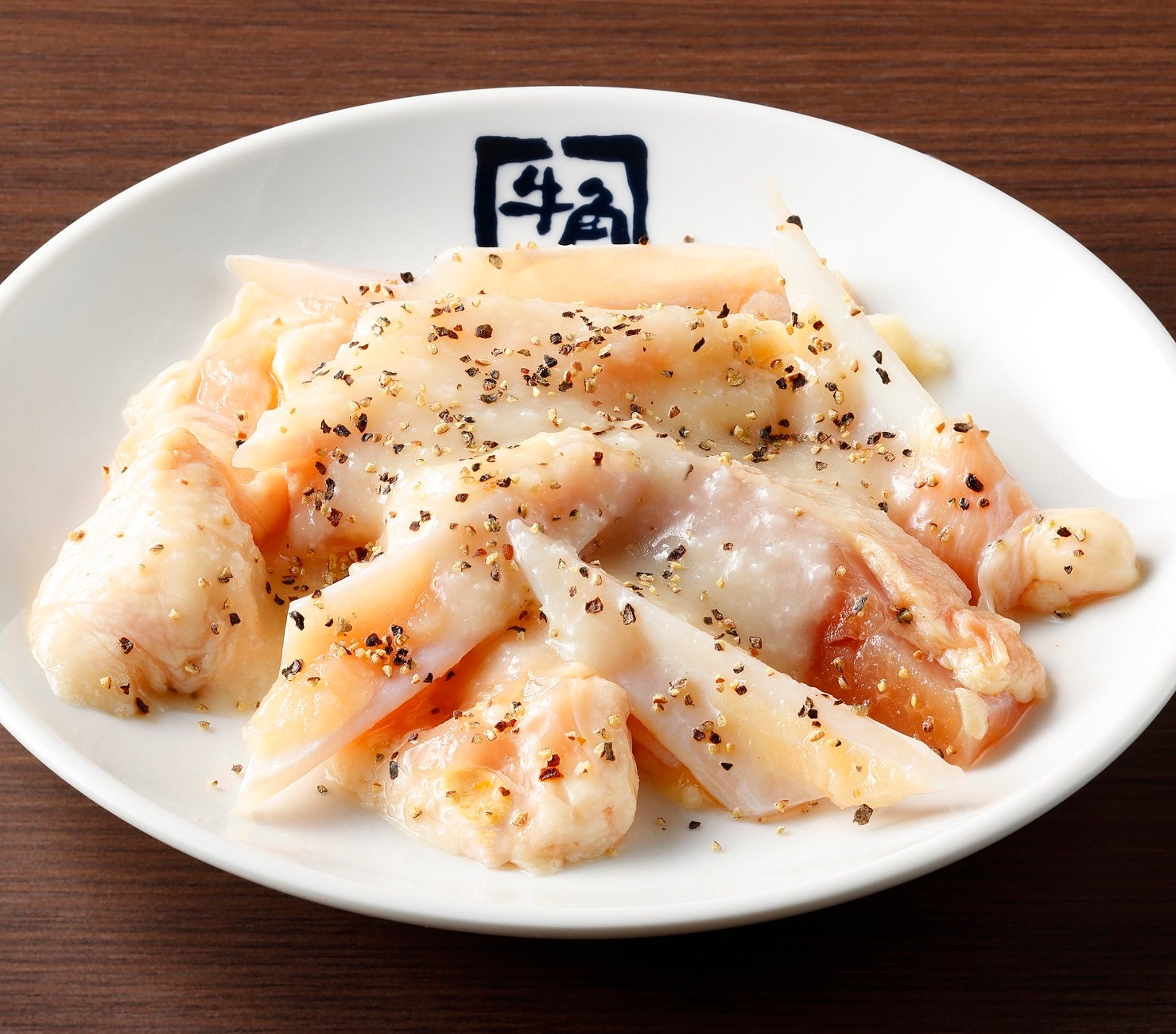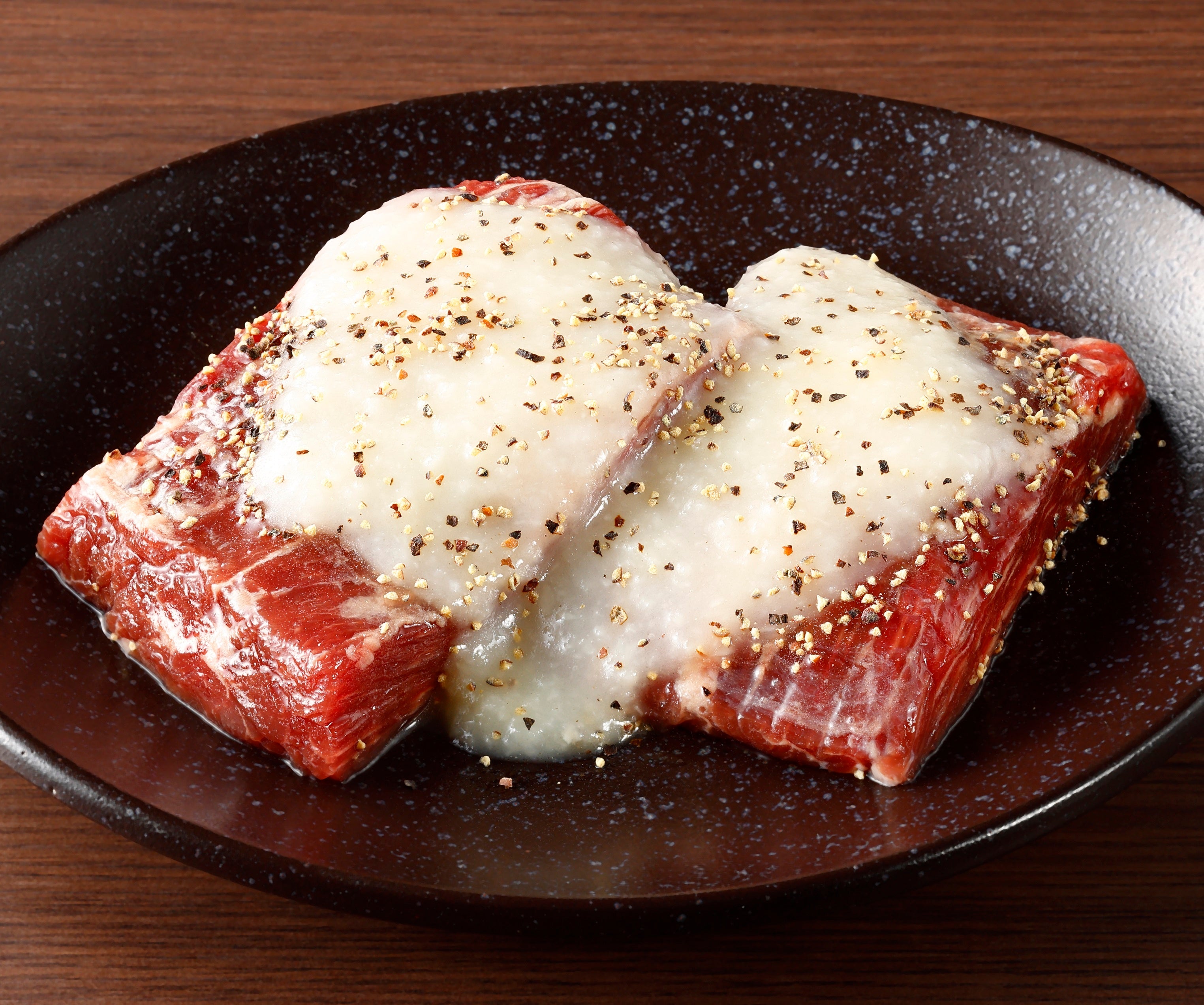 厚切りでやわらかい牛角の人気メニュー「王様ハラミ」。今回は特製にんにくダレをたっぷりと効かせました。