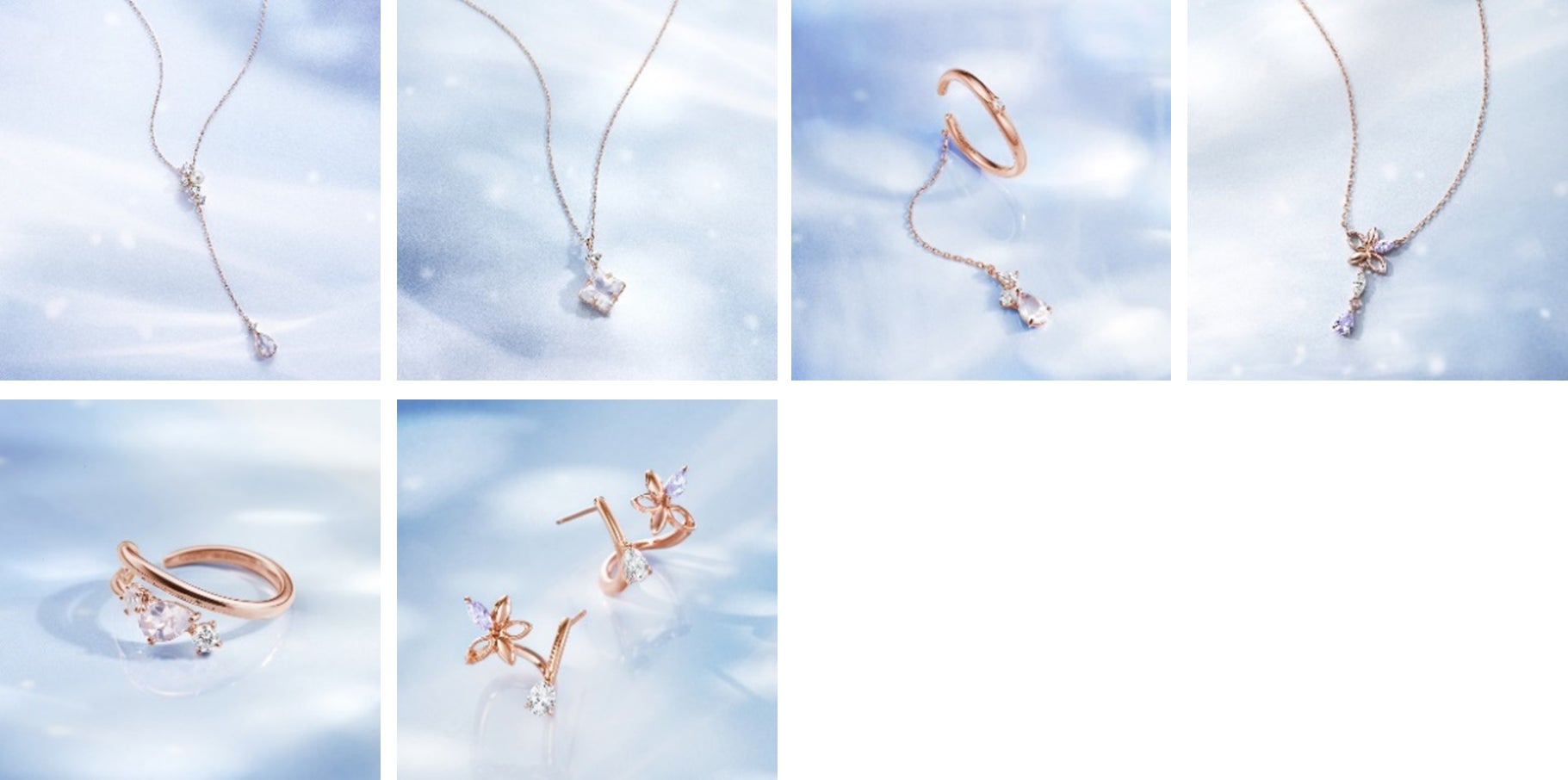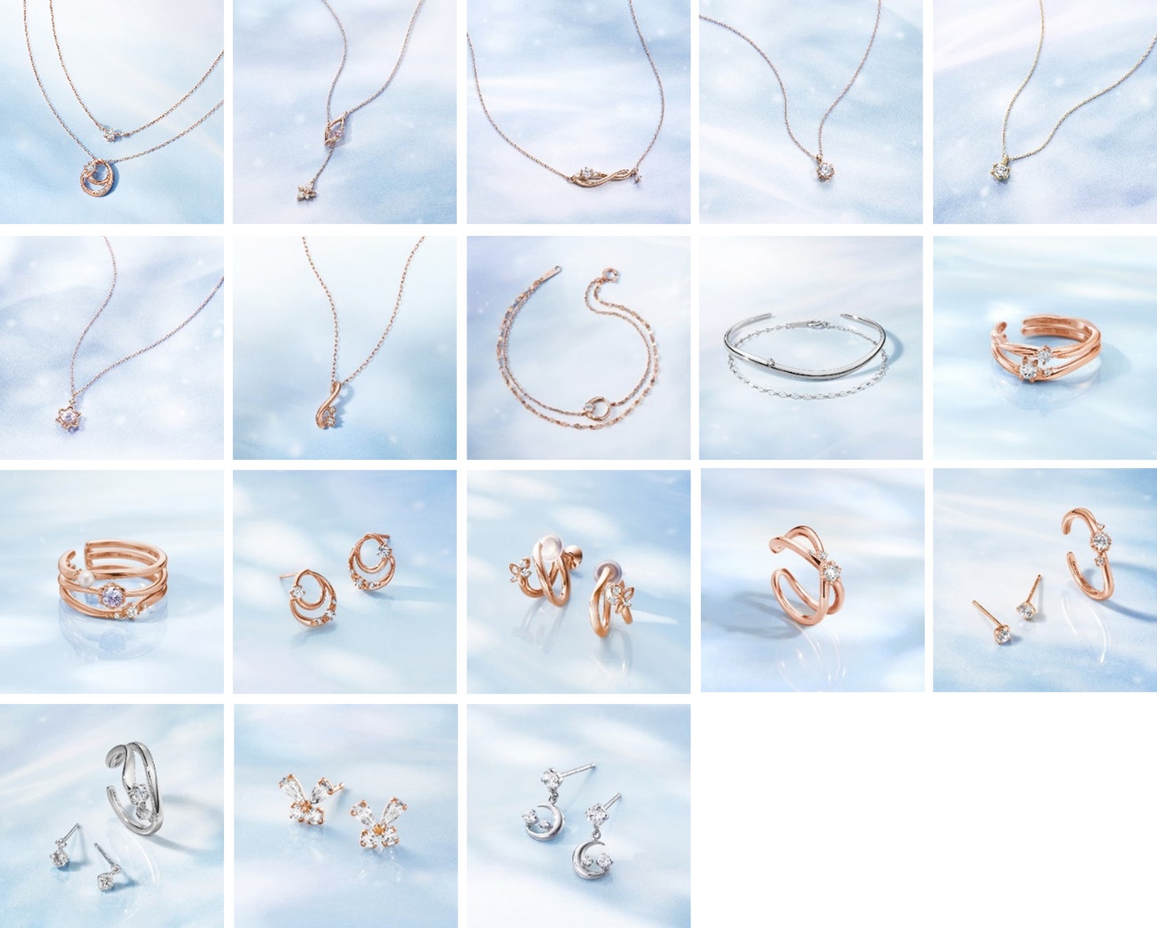 今回のコレクションは、雪景色をキュービックジルコニアやパールで表現した「SNOW」シリーズ、フェルスパーの幻想的な輝きで冬の澄んだ夜空の情景を表現した「SKY」シリーズ、花の香りが漂う様子をラベンダークォーツで表現した「FLOWER」シリーズの3つのシリーズを展開。冬ならではの情景を切り取り、Canal4℃らしい可憐なデザインに落とし込みました。