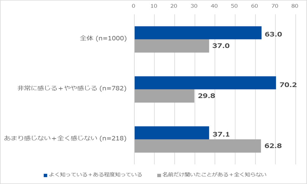 2. 「2025年問題」についての認識度と、「技術承継」への不安度の掛け合わせ集計 認知度が高い層ほど、技術継承への不安も高まる傾向に