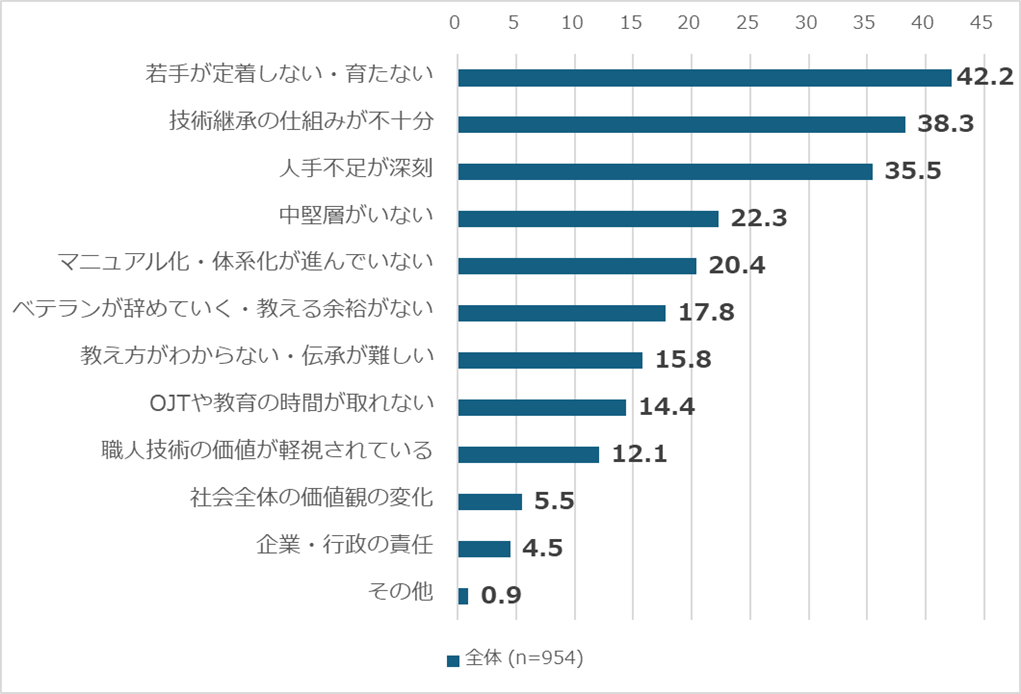 ・技術継承の仕組みが不十分・若手が定着しない・育たない(42.2%)