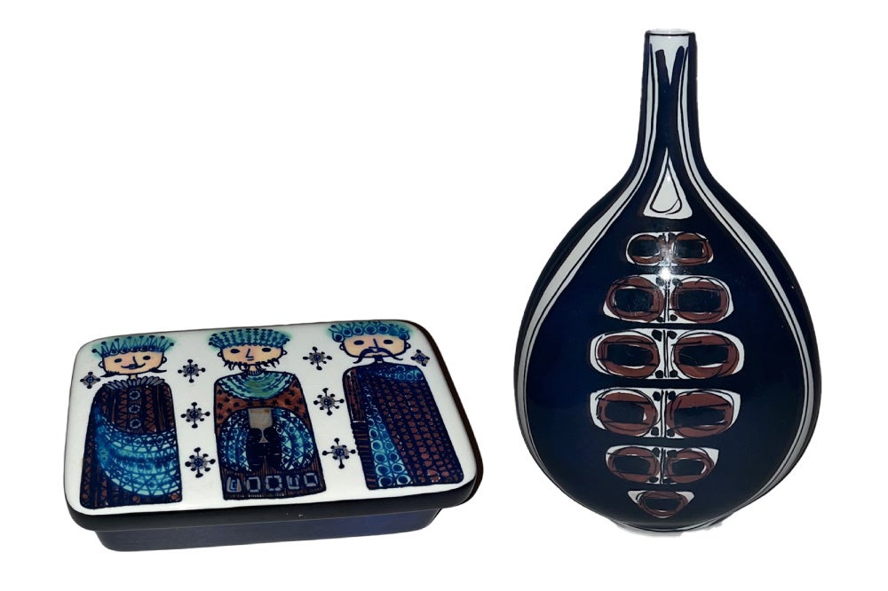 1960年代を中心に製作された「ロイヤルコペンハーゲン」の自然をモチーフにした絵柄で人気を博したテネラシリーズ。バターケースはつぶらな瞳の人物が描かれた珍しいデザインです。
