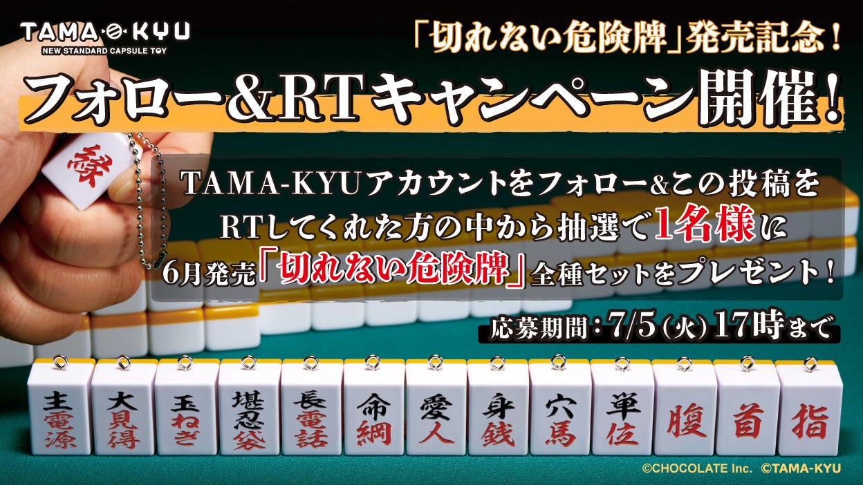 『TAMA-KYU』のTwitterアカウントをフォローし、該当のツイートをリツイートすると抽選で1名様に「切れない危険牌」全種セットが当たります。