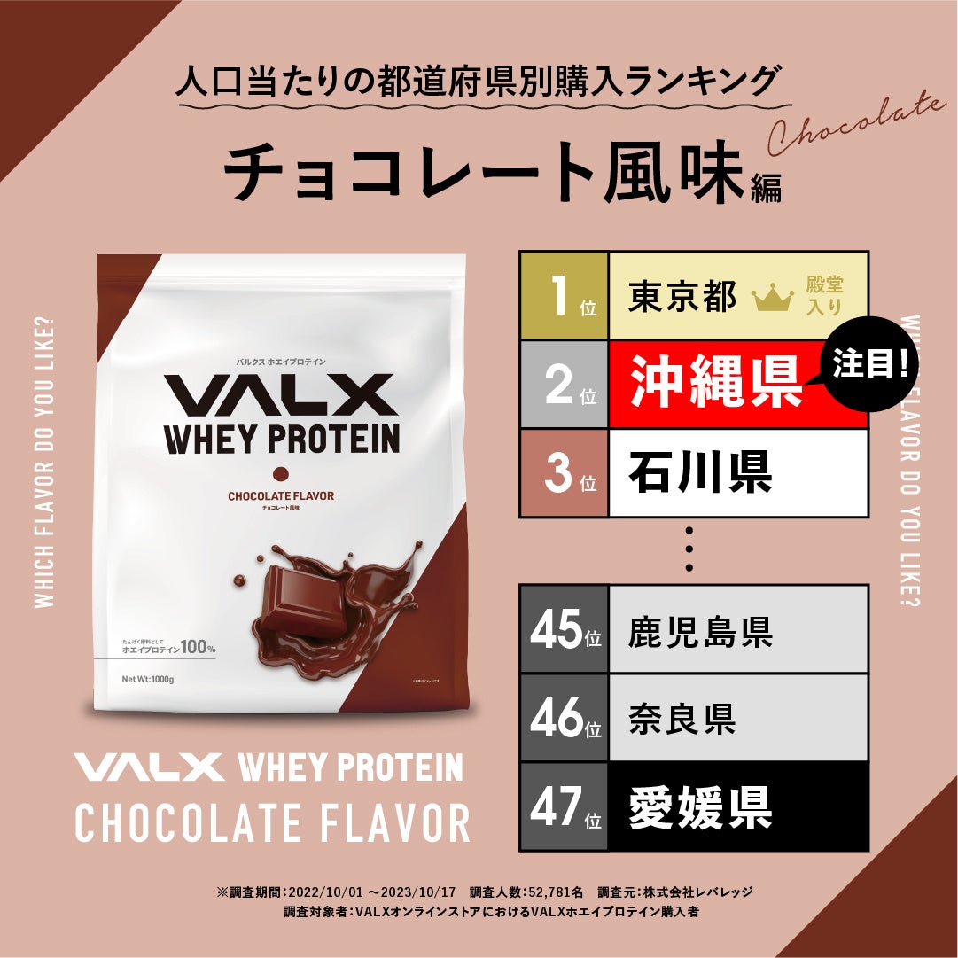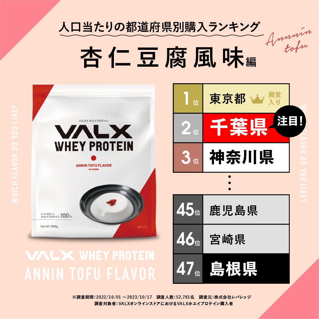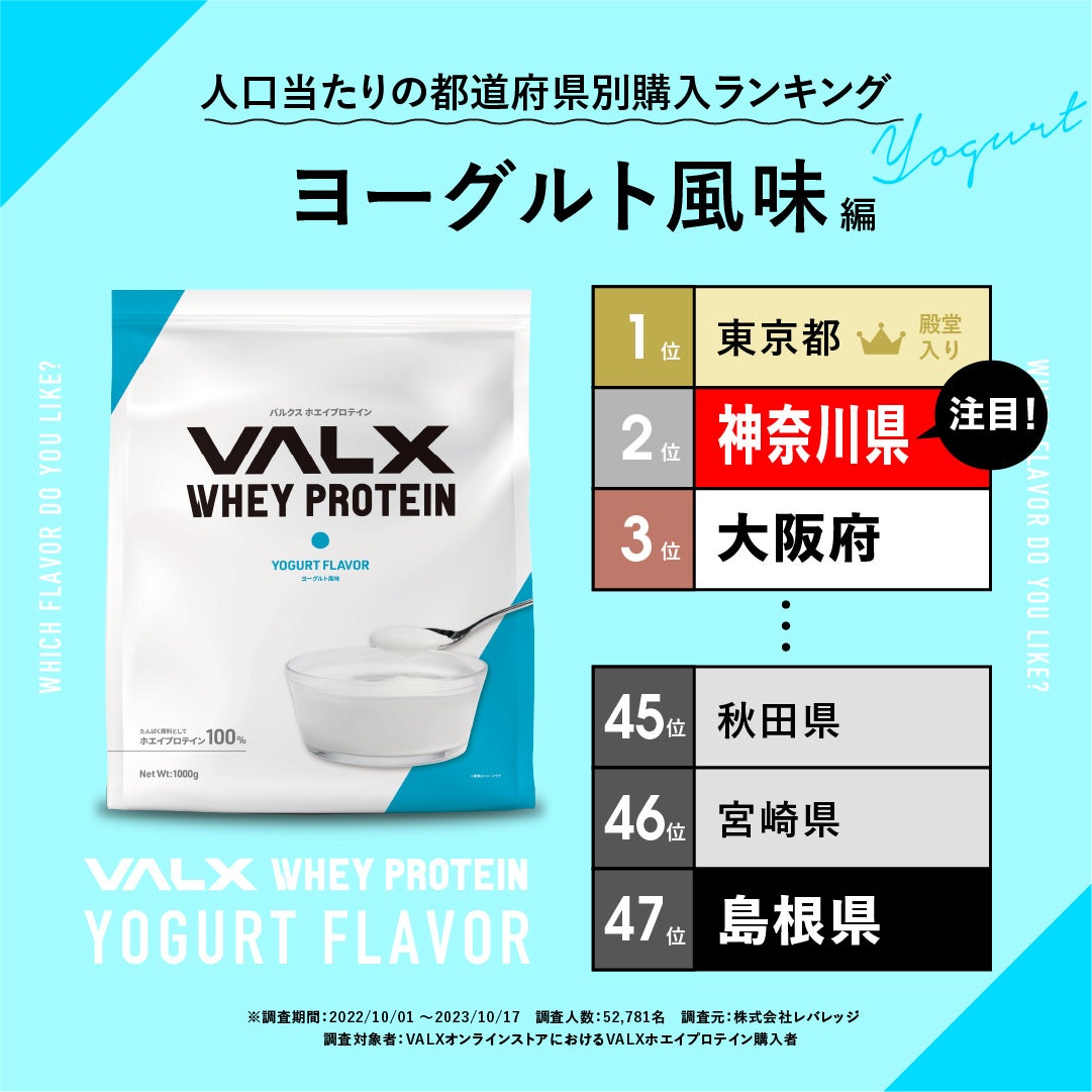 VALXホエイプロテインの人口当たりの都道府県別購入ランキングを大公開