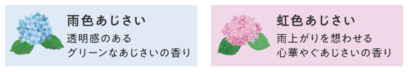 人気の紫陽花シリーズに、今年は紫陽花エキス*と植物オイル配合の「ネイルオイル」と、ふんわり紫陽花の香りが広がる水彩画のようなデザインが美しい「フレグランスタグ」が新登場。