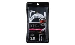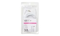 <マイク対応ヘッドホン・イヤホン用延長コード (高耐久モデル) 約3.0m ホワイト>