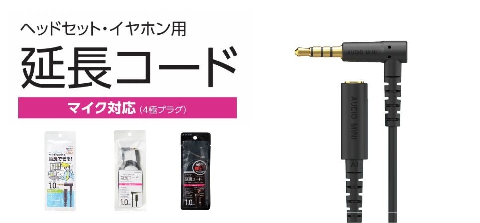 エレコム株式会社(本社:大阪市中央区、取締役社長:柴田幸生)は、ヘッドセット・イヤホン用の延長コード3種類を新発売いたしました。