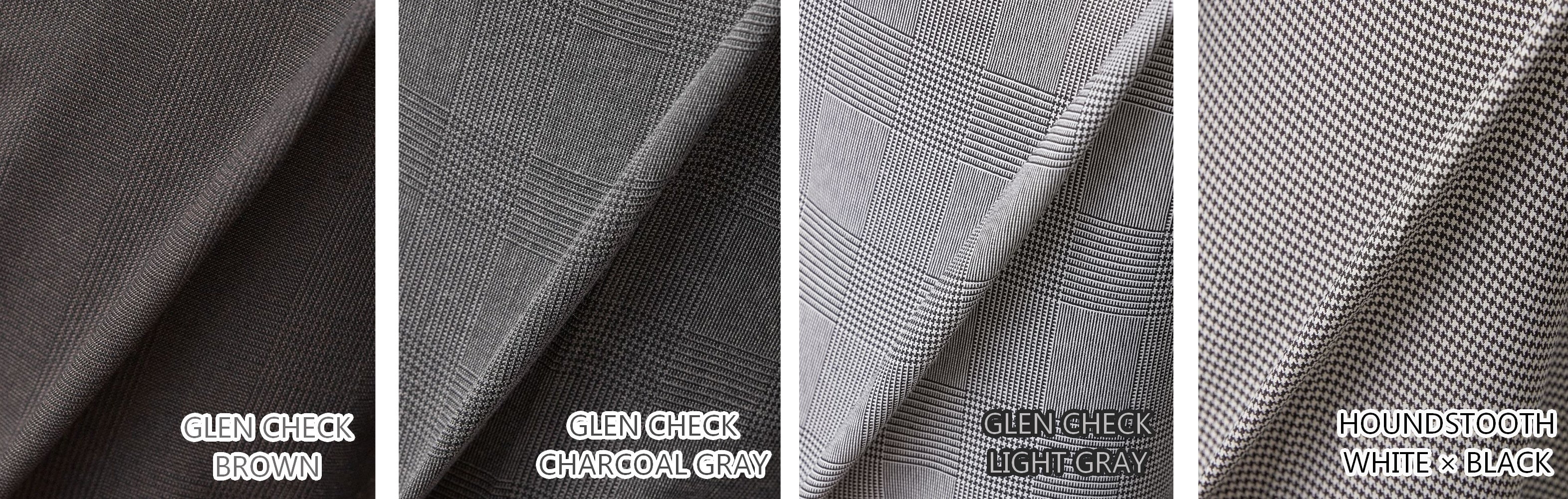 ブラウン、チャコールグレー、ライトグレー(グレンチェック)、千鳥格子(シロクロ)