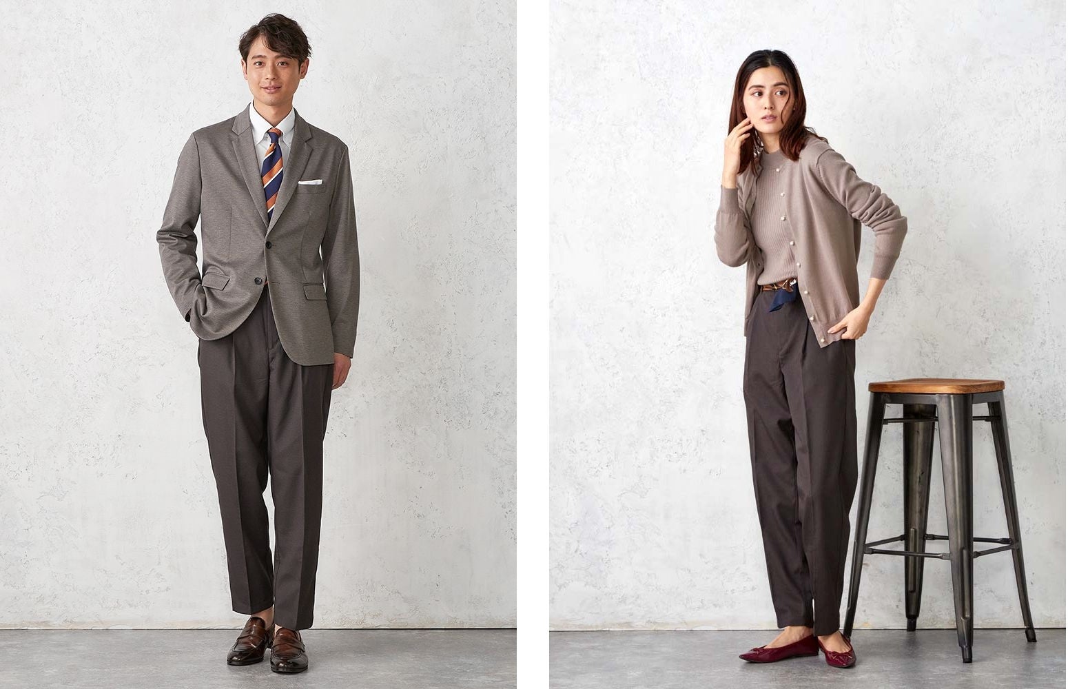 無地のシンプルなタイプから、ビジネスシーンで着用しやすい落ち着いたグレンチェック、千鳥格子柄など豊富なバリエーション全8種の色柄からお好みでデザインをお選びいただけるパンツです。