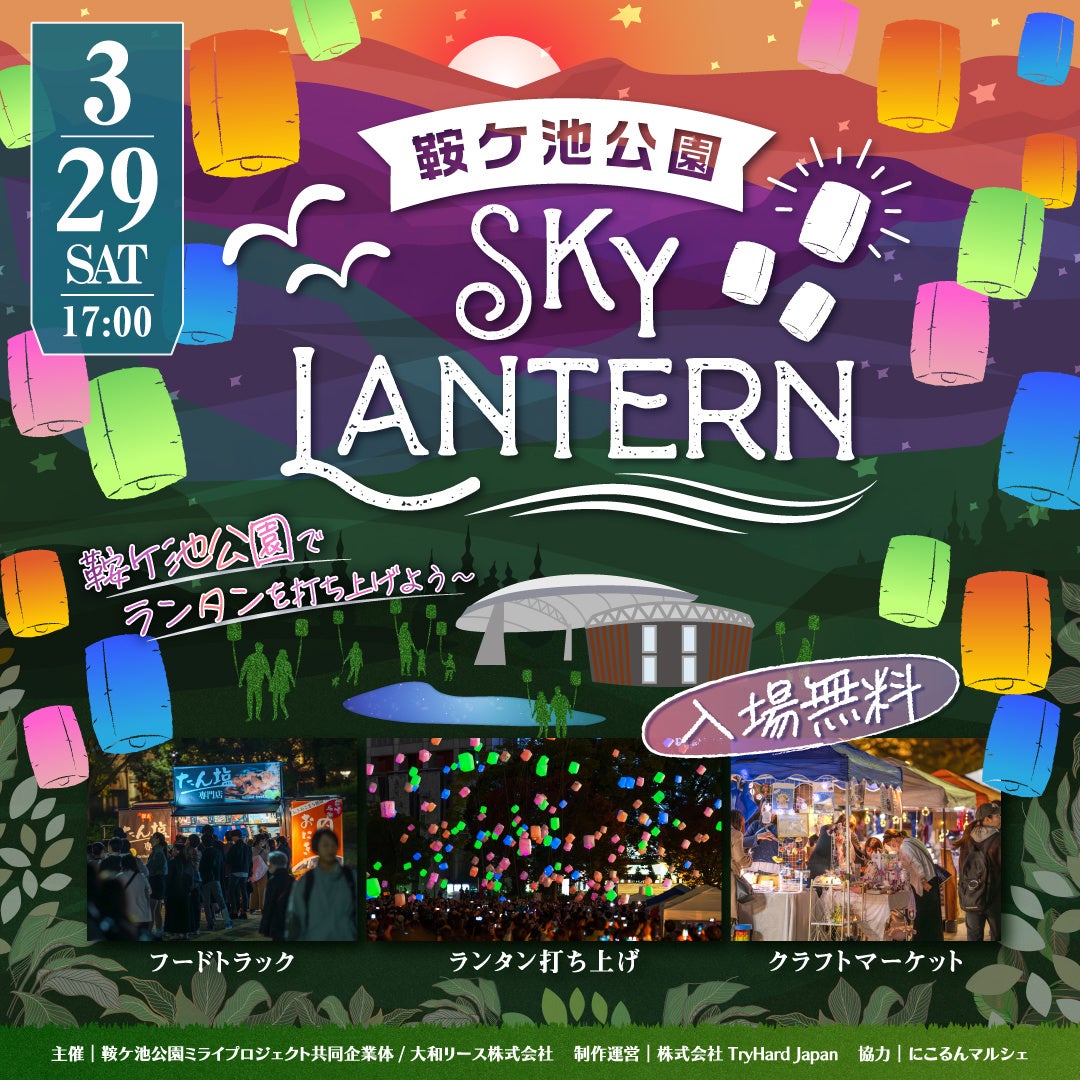 株式会社TryHard Japanは、鞍ケ池公園ミライプロジェクト共同企業体と大和リース株式会社が主催する、スカイランタンを夜空に打ち上げる参加型イベント「鞍ケ池公園スカイランタン」を2025年3月29日(土)愛知県豊田市の鞍ケ池公園にて開催することを発表いたします。