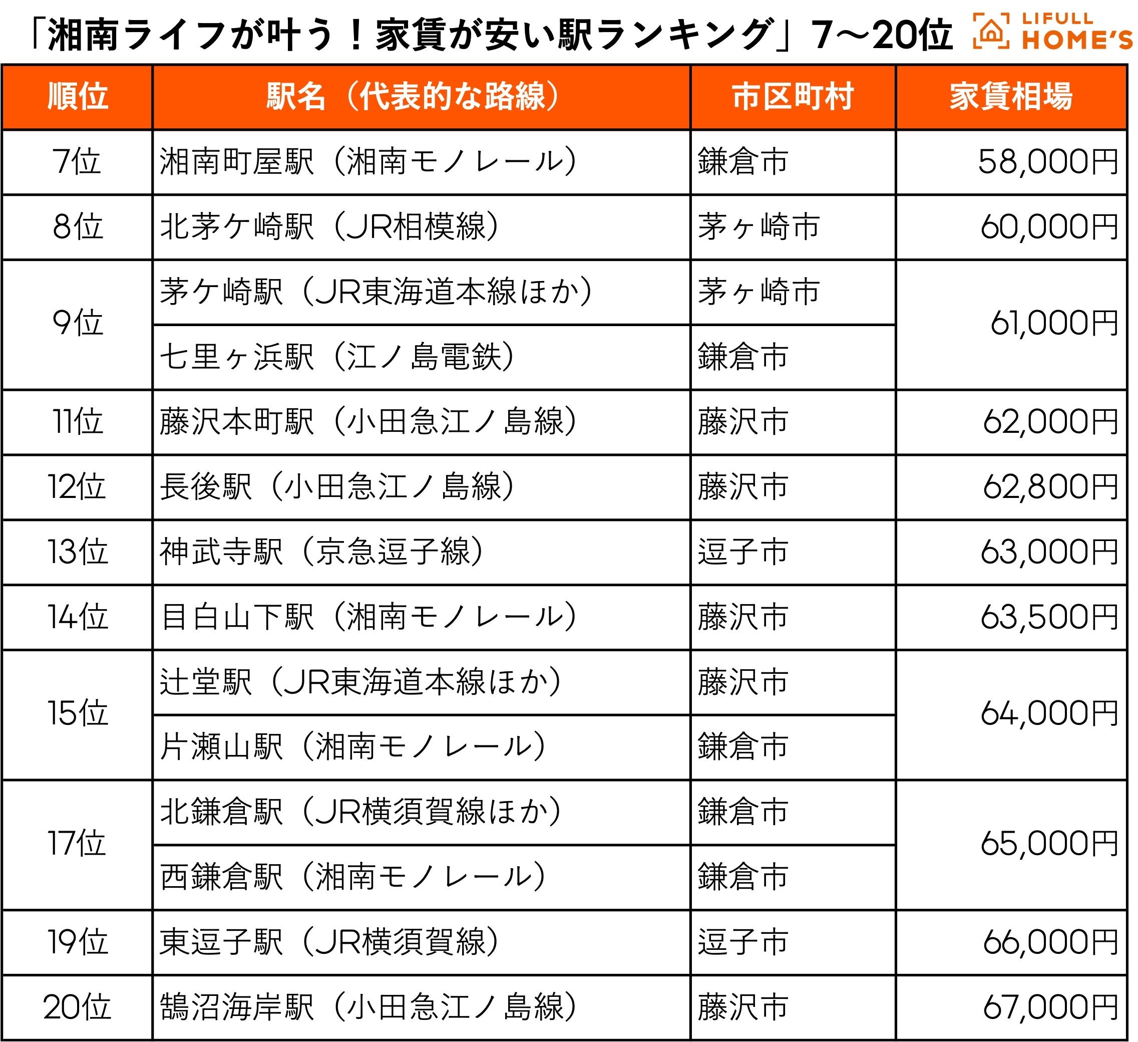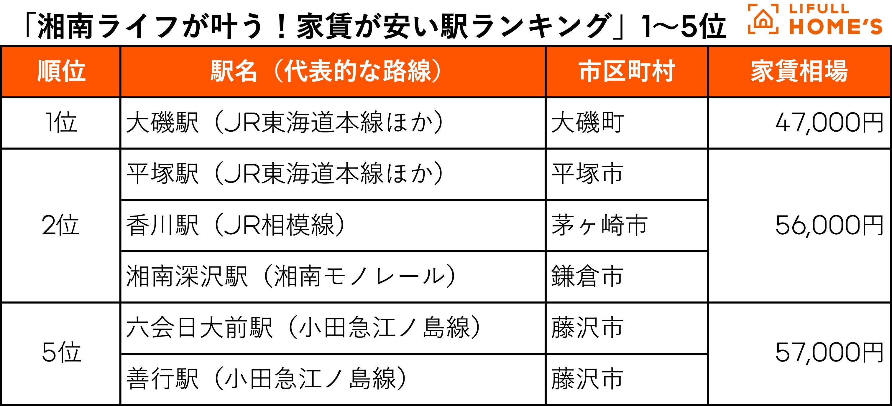 そこで今回は、湘南エリア※2の単身向け賃貸物件を対象とした「湘南ライフが叶う!家賃が安い駅ランキング」を発表します。