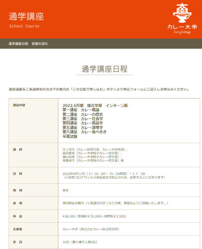 ★お申込み➨こちらから:カレー大學HP www.currydaigaku.jp