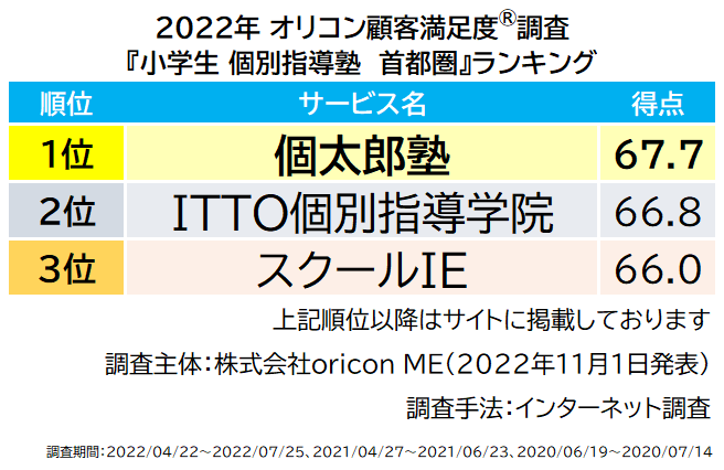 《調査概要》 2022年 オリコン顧客満足度®調査 小学生 個別指導塾