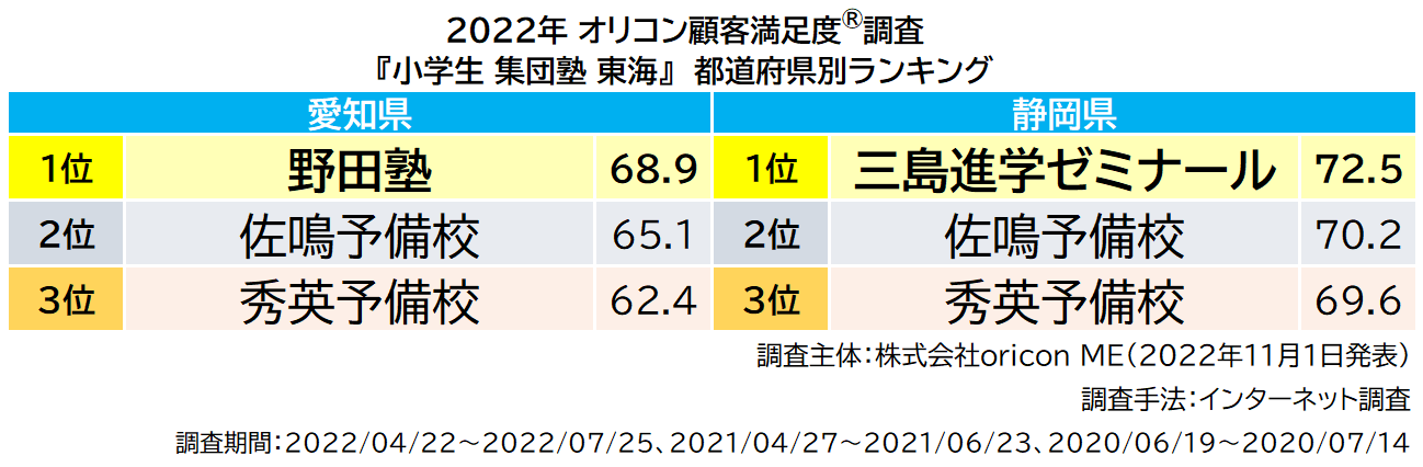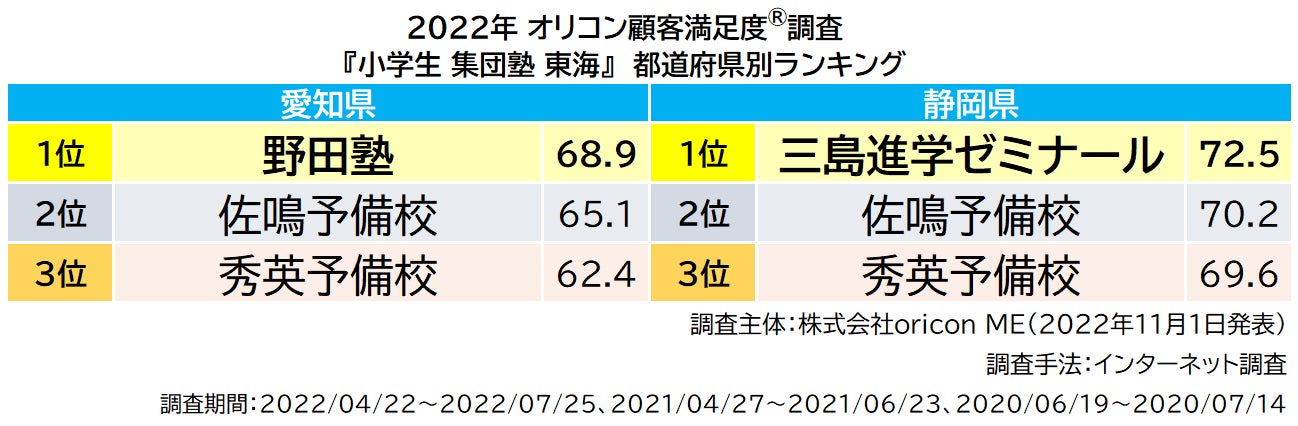 なお、「静岡県」では【三島進学ゼミナール(三島進学ゼミナール<さなるグループ> 本社:静岡県三島市)】が3年連続で1位となっています。