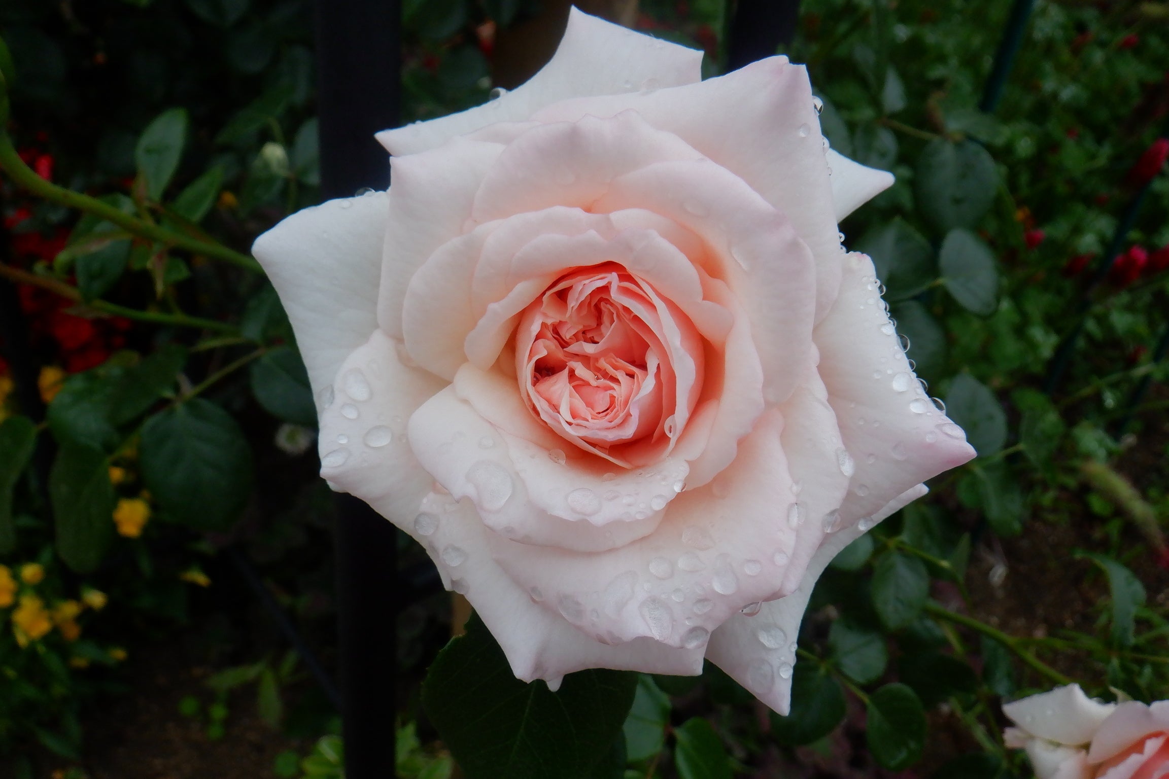 珍しい「斑入りペニー・レーン(つるバラ)」がアーチを彩ります