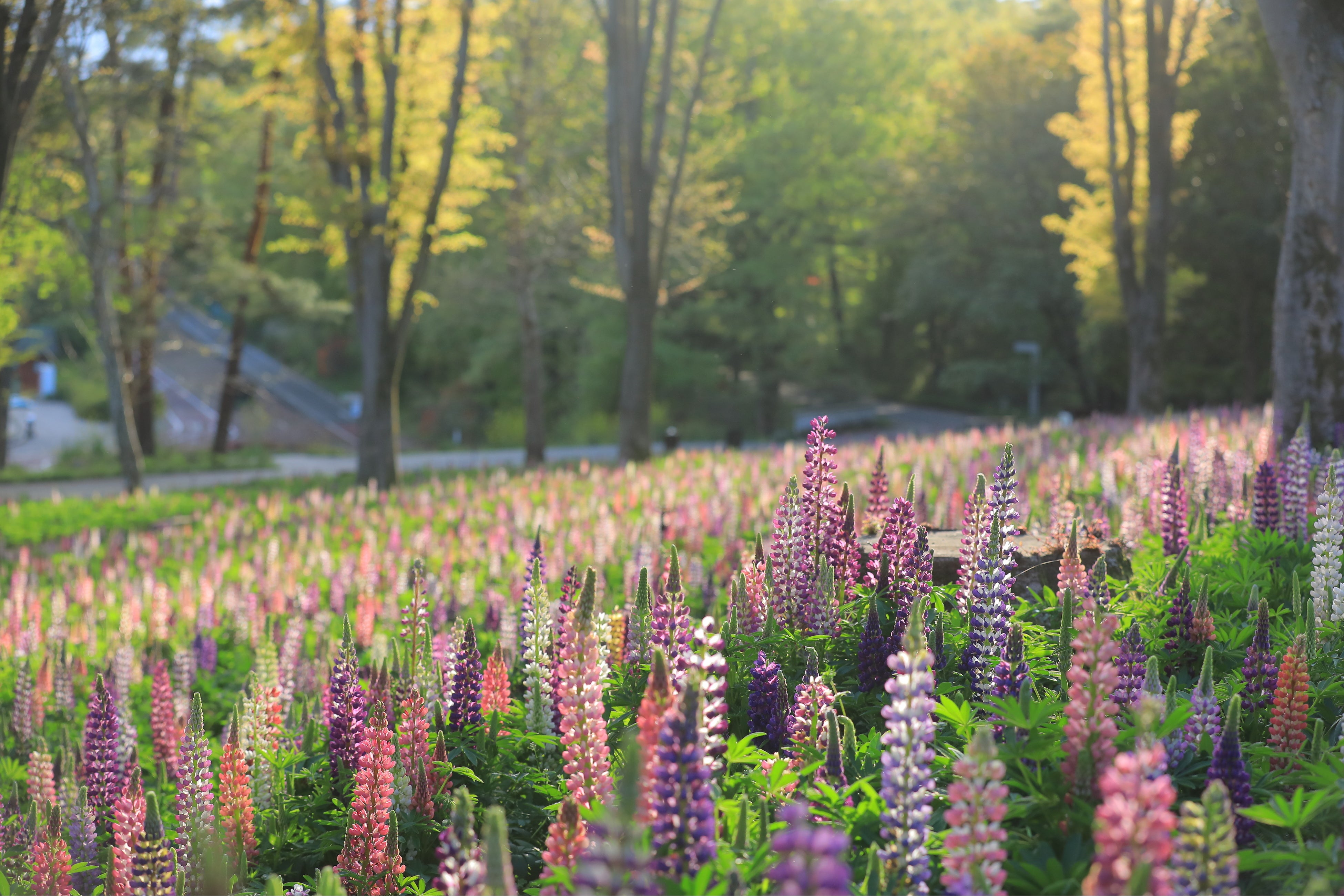 空に向かって咲くルピナスに、ケヤキの木漏れ日が射す幻想的な景色を、甘い上品な香りと共にお楽しみいただけます。