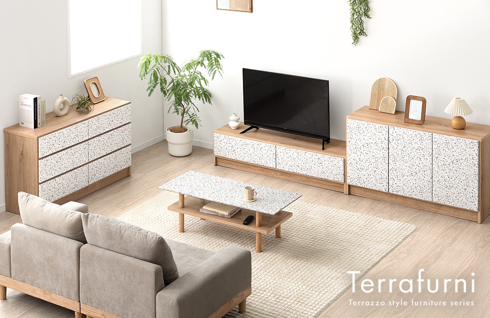 いま再注目を集めるトレンドデザイン“テラゾー柄”を取り入れたナチュラルモダンな家具シリーズ“Terrafurni (テラファニ)”登場