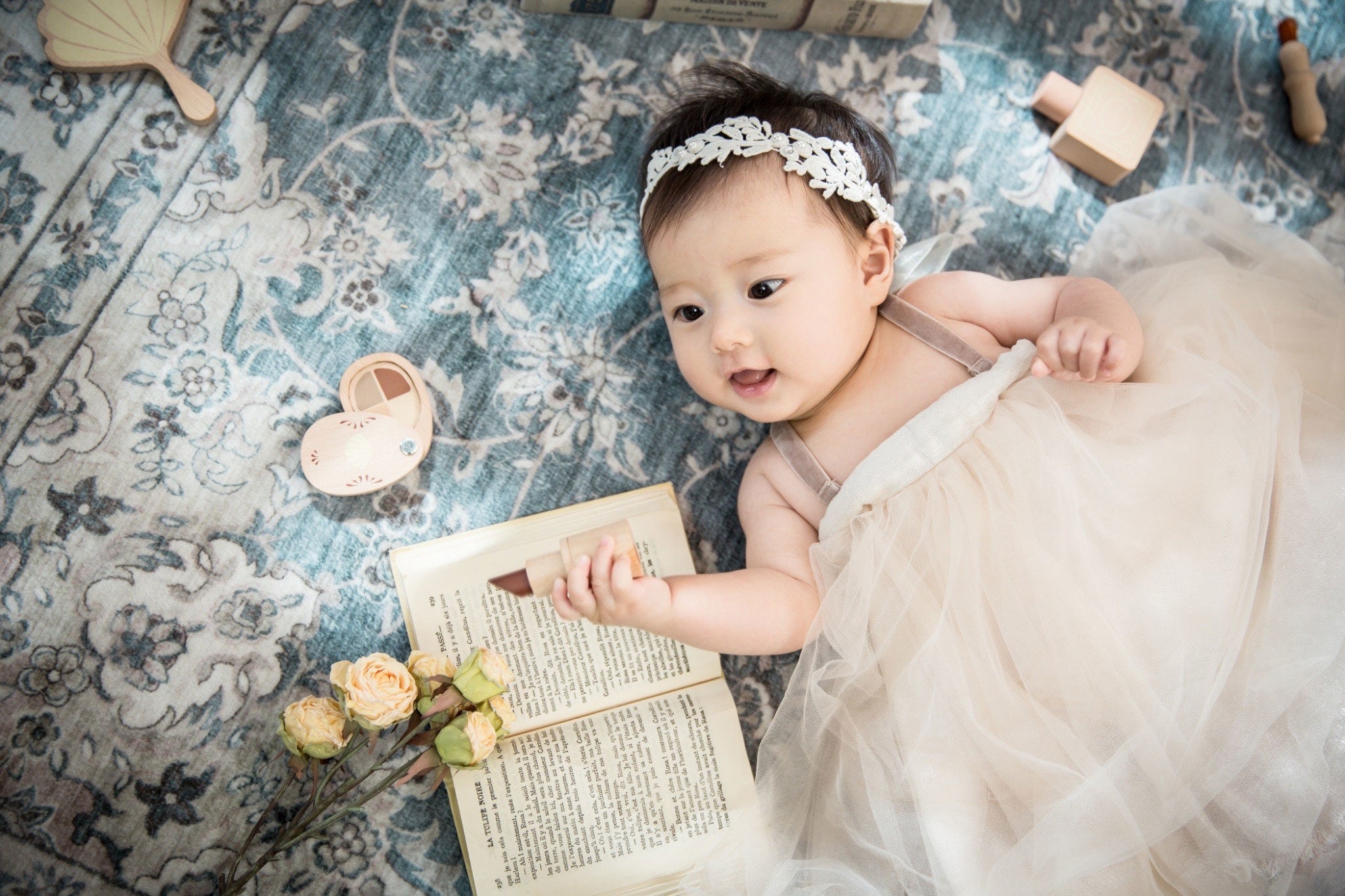 赤ちゃんはうつ伏せやごろんで可愛く撮影ができます。
