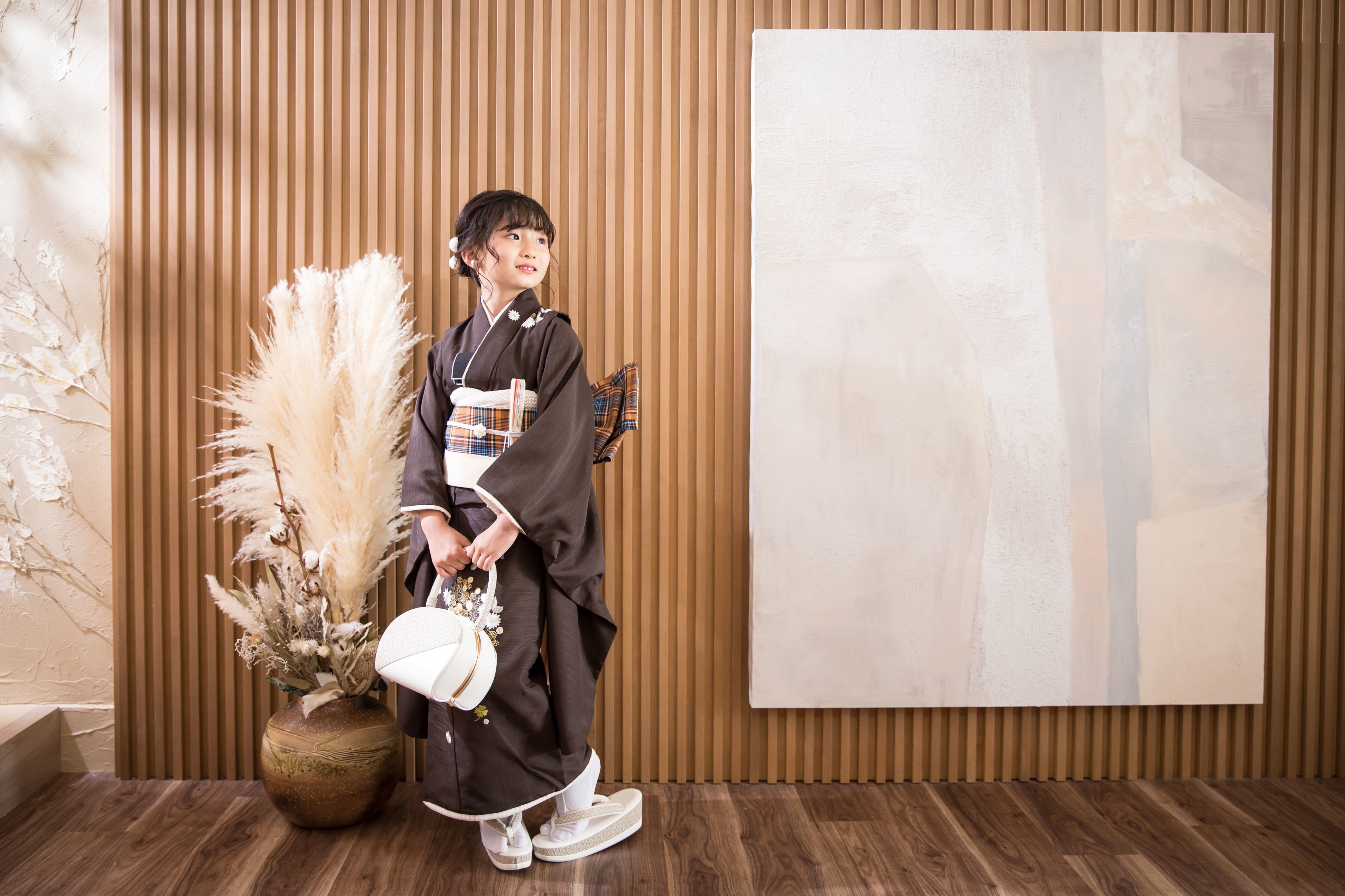 今回はチャコールの和装にチェックの帯がおしゃれなスタイリング。和装はもちろんですが、洋装にもおすすめ。