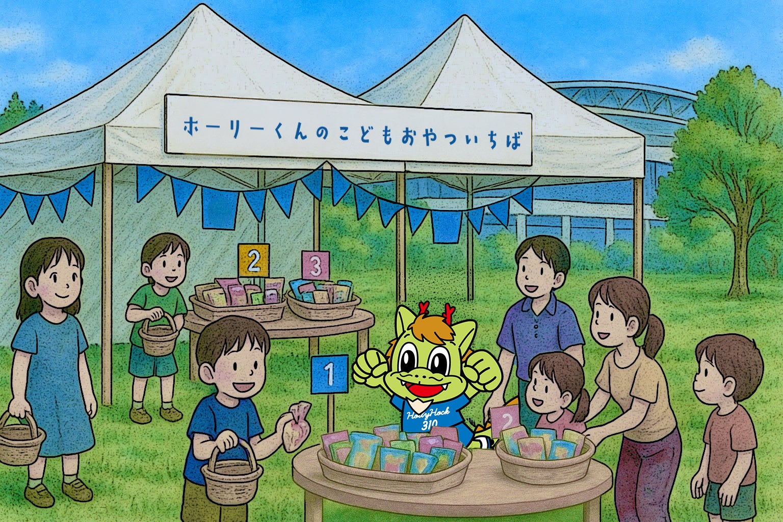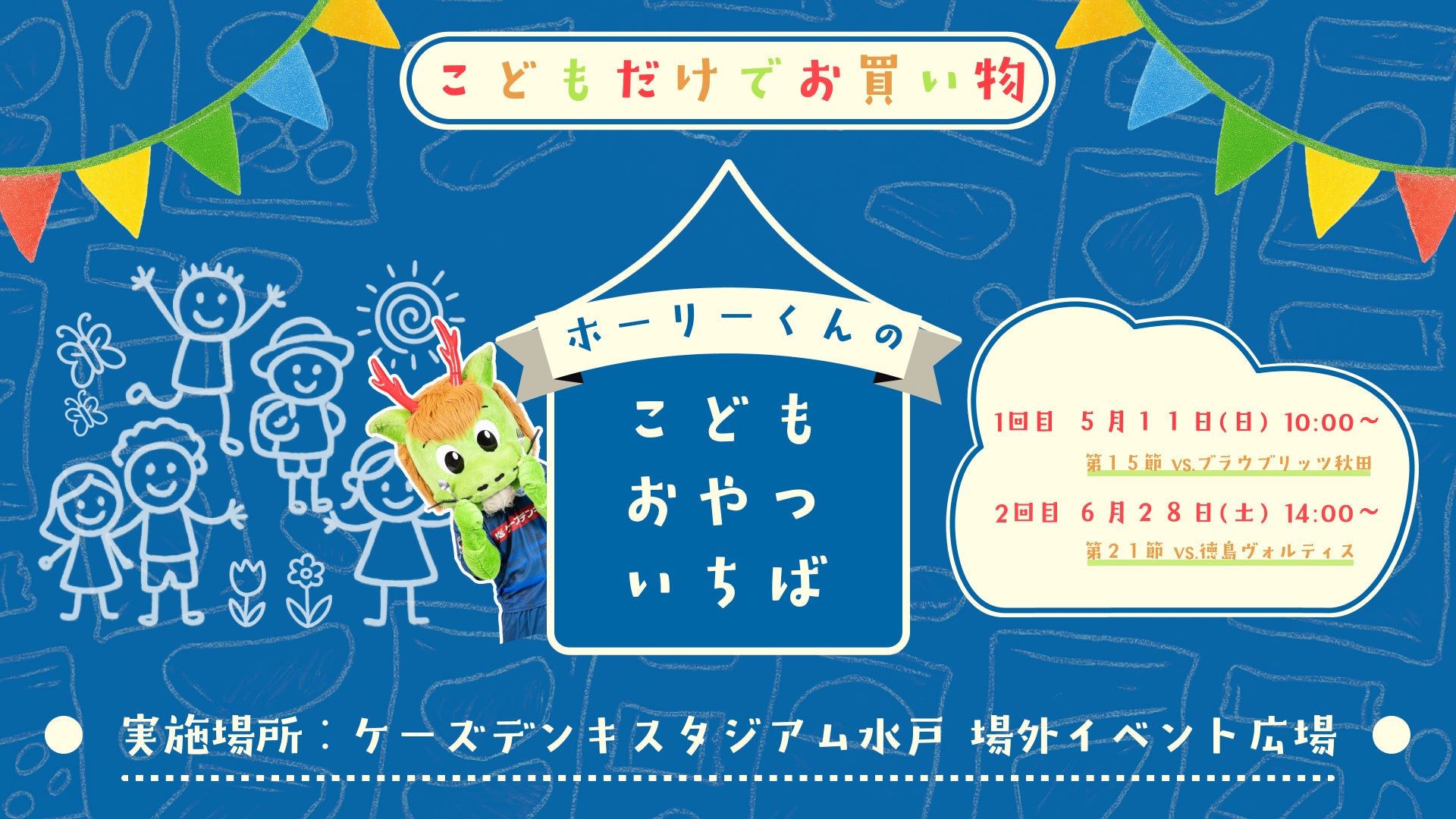 5月11 日(日)、6月28日(土)の水戸ホーリーホックホームゲームにて、「ホーリーくんのこどもおやついちば」の開催が決定いたしましたので、下記の通りご案内いたします。