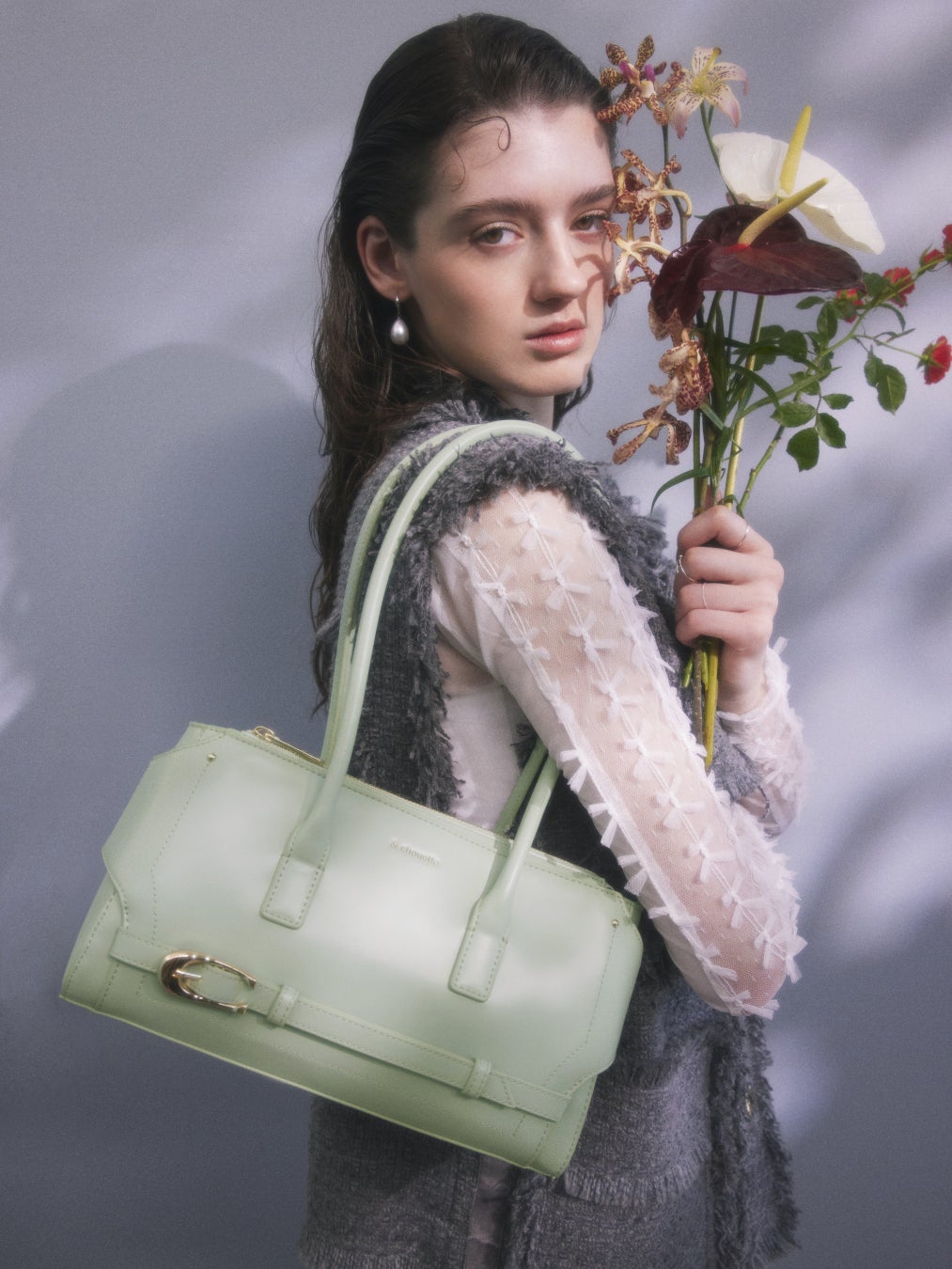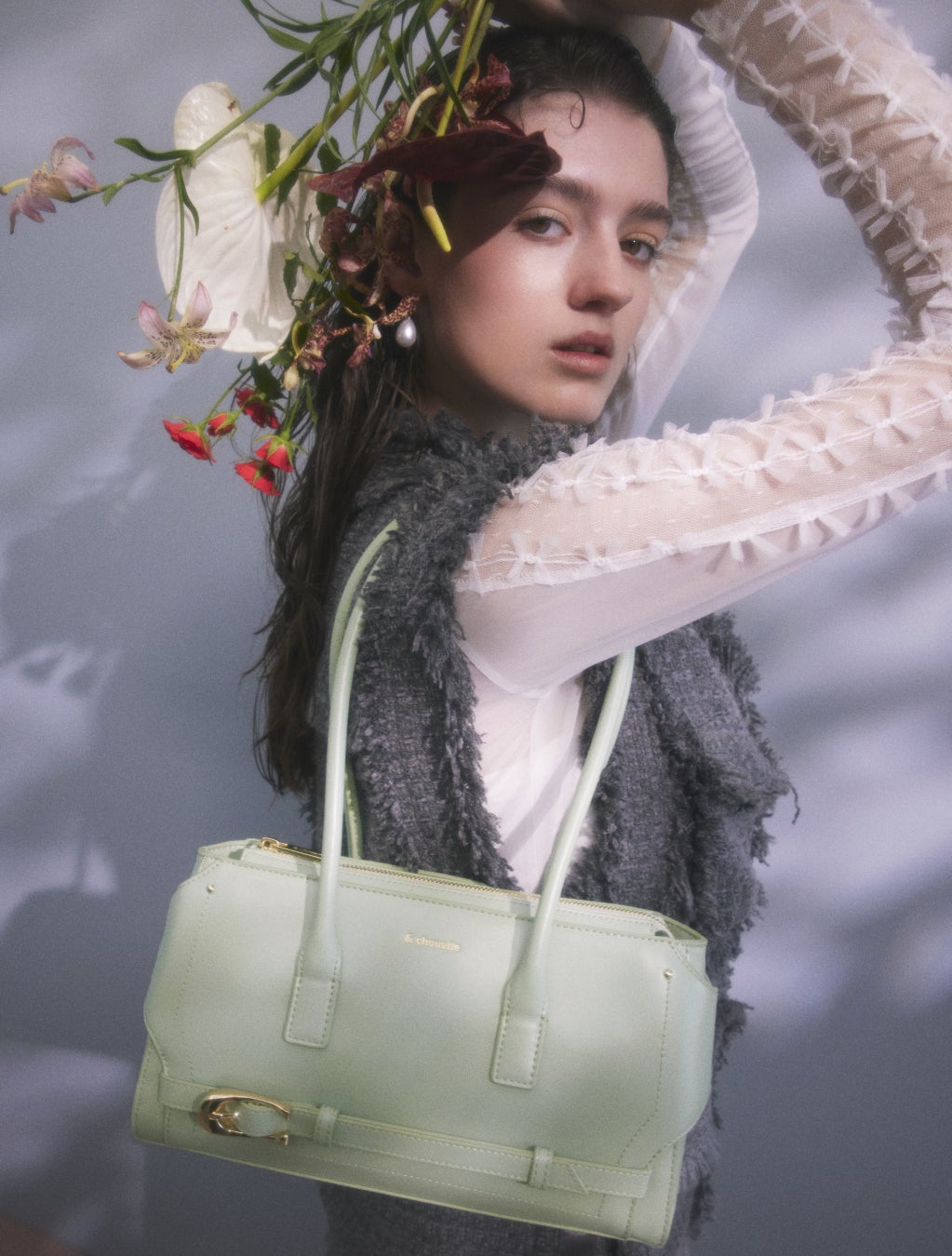 フォーマルなデザインのショルダーバッグにトレンドのロングハンドルのデザインや大人っぽいスクエア型の3タイプが登場。