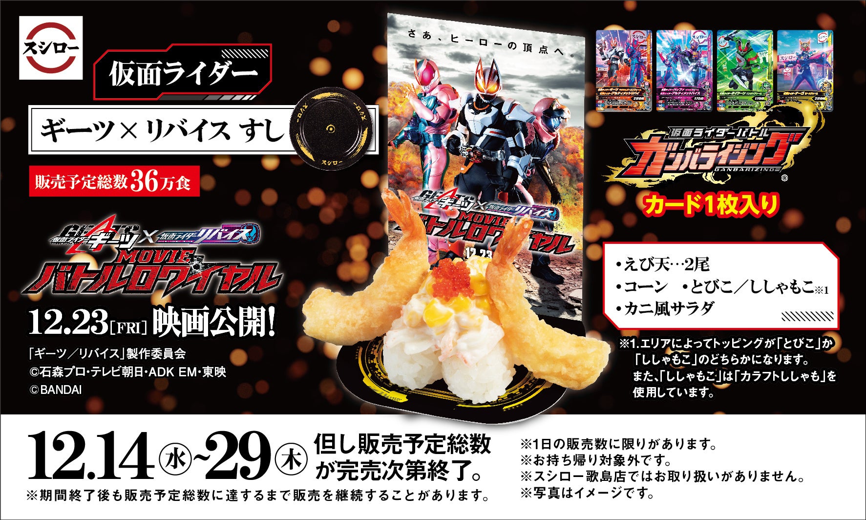 コラボ商品にはオリジナルのガンバライジングカードがついてくる!<12月14日(水)より全国のスシローにて販売>