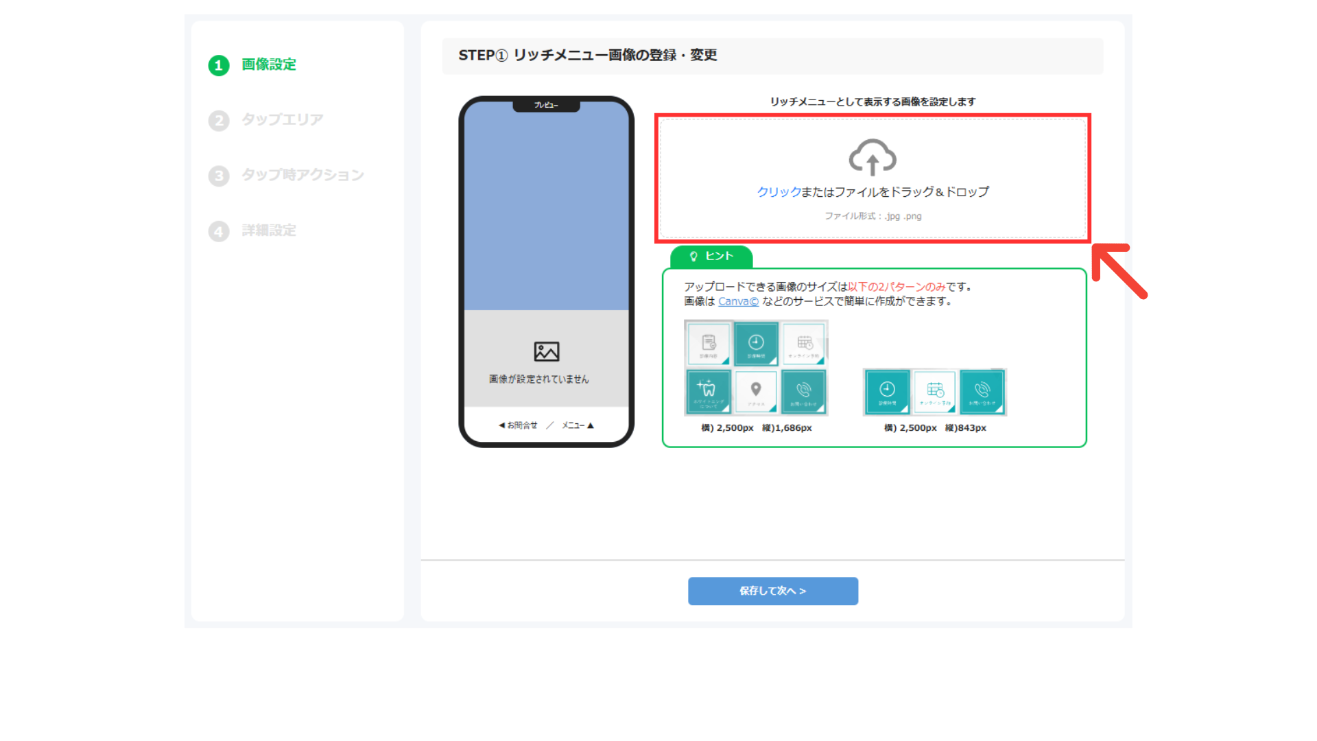 今回のアップデートにより、リッチメニュー画像をドラッグ&ドロップだけで登録できるようになりました。