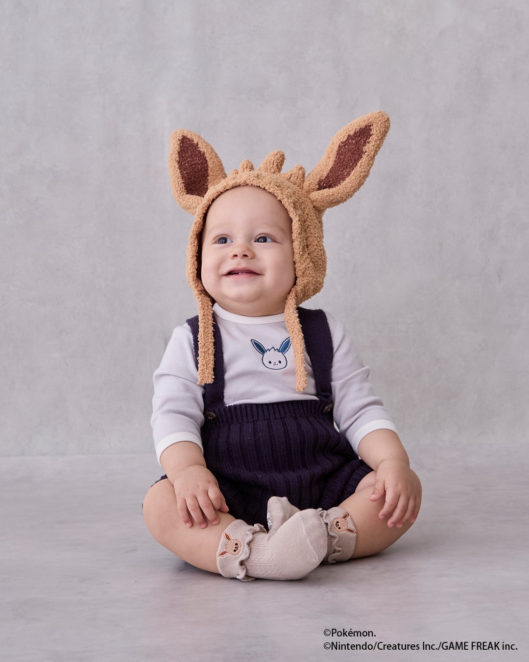 ベビーには、ピカチュウとイーブイになりきれる耳つきニット帽もご用意。