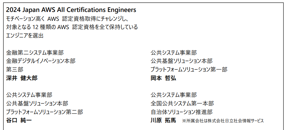 日立社員、AWSに精通したエンジニアを表彰する「2024 AWS Ambassadors」をはじめとした4部門すべてに選出