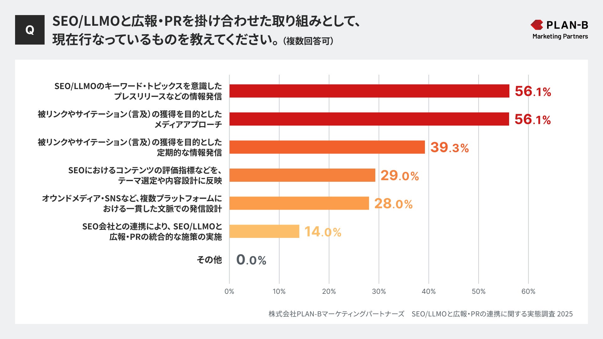 施策の実施状況からも、SEO/LLMOと広報・PRを連携的に扱う動きが、日本でも浸透し始めていることがわかります。