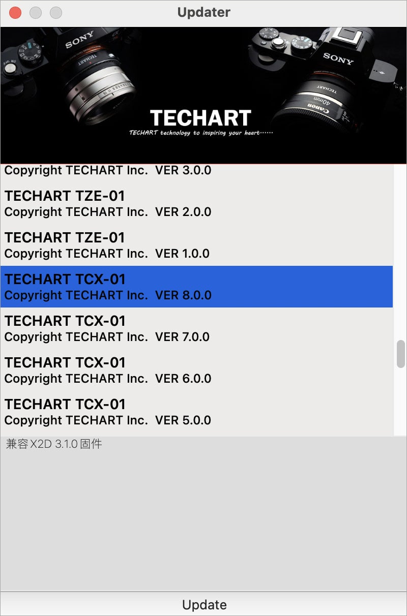 TECHART(テックアート)TCX-01(キヤノンEFマウントレンズ → ハッセルブラッドXマウント変換)電子マウントアダプターのファームウェアアップデート Ver.8.0.0を公開いたします。