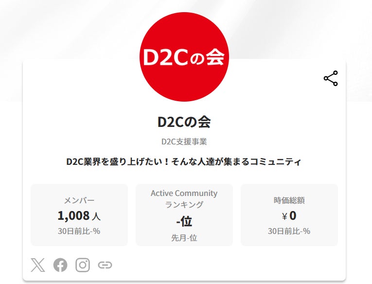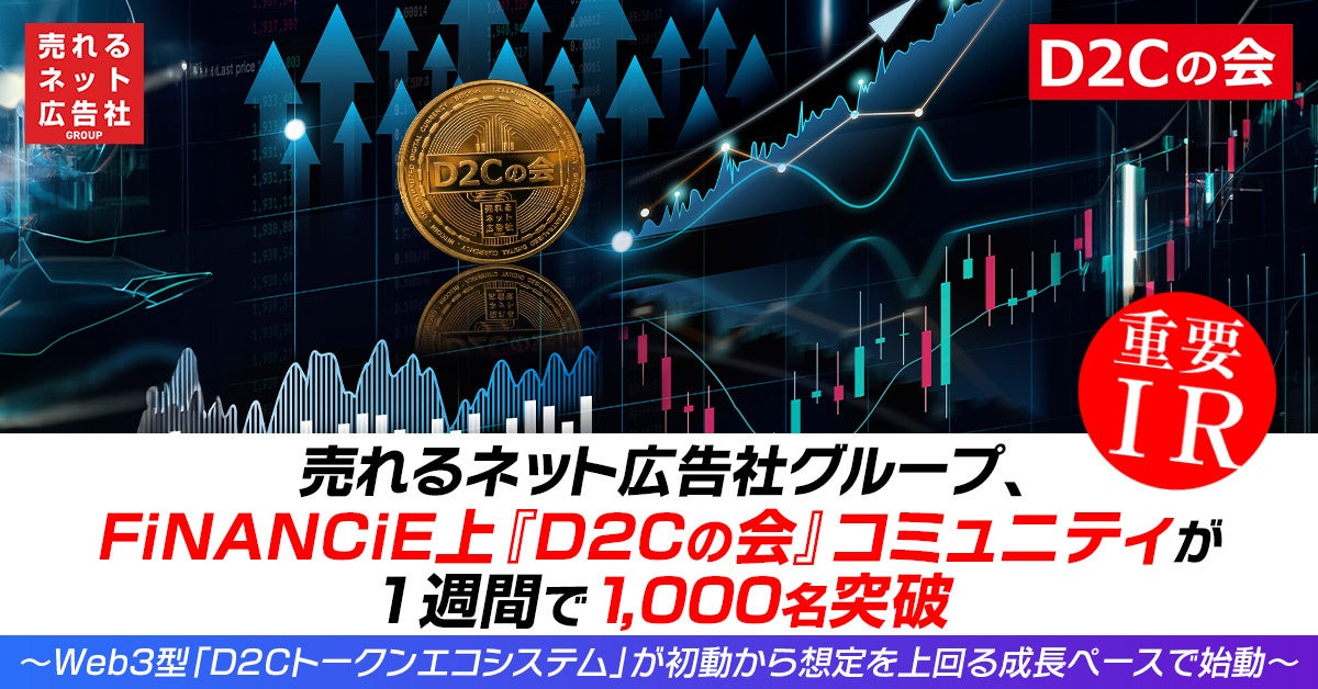 売れるネット広告社グループ、FiNANCiE上『D2Cの会』コミュニティが1週間で1,000名突破 ~Web3型「D2Cトークンエコシステム」が初動から想定を上回る成長ペースで始動~
