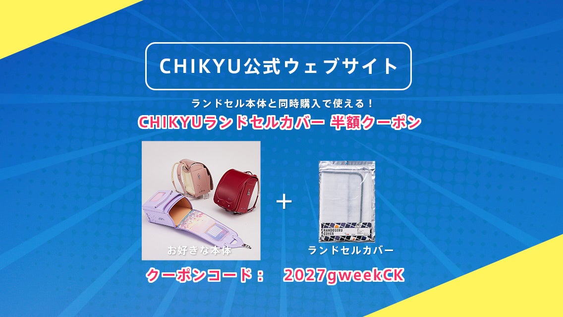 公式ウェブサイトにて、ランドセル本体とCHIKYUランドセルカバーを同時購入で使える「ランドセルカバー半額」クーポンを配布!