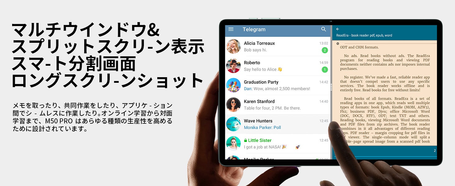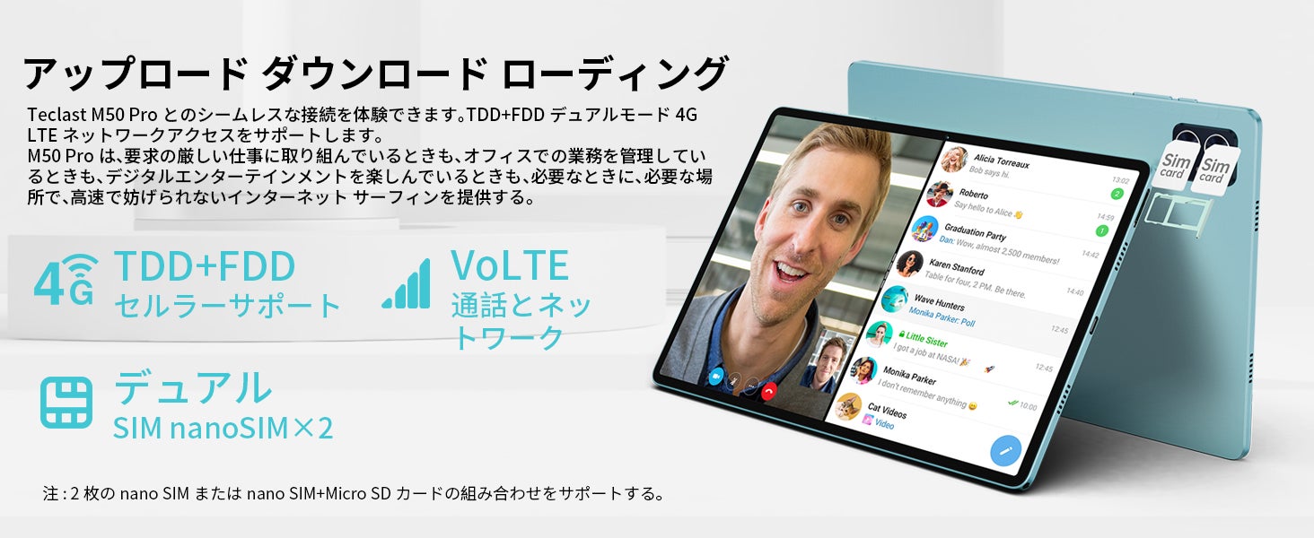 P40HDはTDD+FDDのデュアルモデル4G LTEネットワークアクセスに対応し、VoLTEによるネットワークと通話の同時利用が可能です。デュアルSIMデュアルスタンバイ機能により、仕事とプライベートの切り替えが簡単にできます。802.11ac仕様のデュアルバンドWiFiネットワークに対応し、ネットワークの世界でスッキリ楽しむことができます。Bluetooth 5.0の低消費電力転送により、タブレットの可能性を広げます。