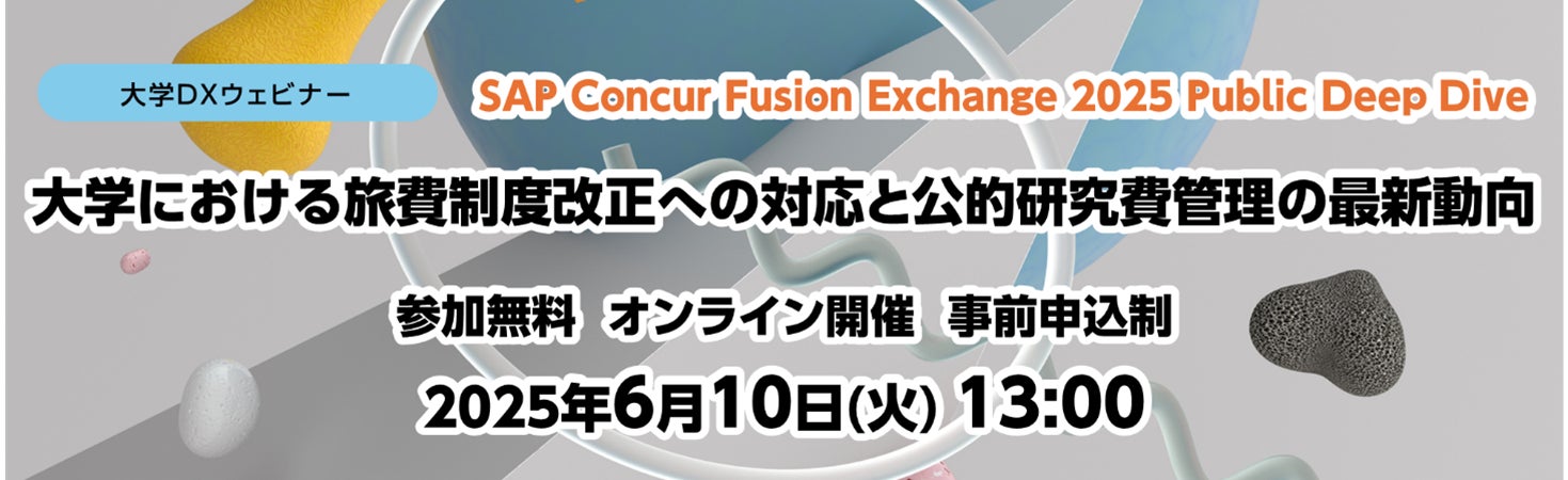 共催オンラインイベント「SAP Concur Fusion Exchange 2025 Public Deep Dive / 大学における旅費制度改正への対応と公的研究費管理の最新動向」登壇のお知らせ