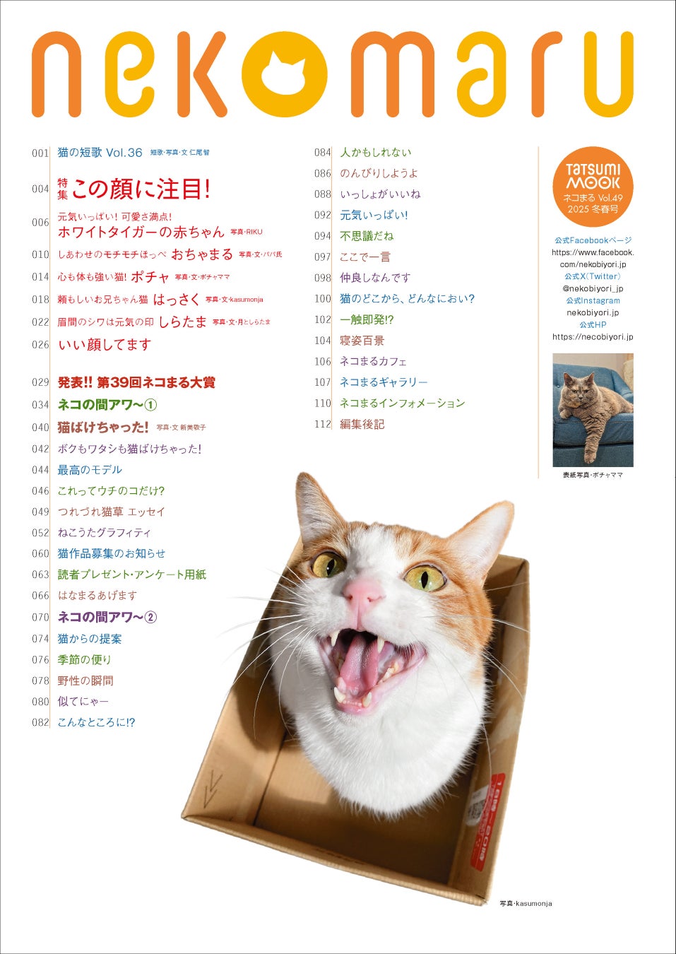 その他にも、膨大な投稿写真の中から選出された「第39回・ネコまる大賞」の発表や、子猫のときからの成長っぷりが楽しめる「猫ばけちゃった!」のコーナー、猫への想いを綴った心温まるエッセイやくすっと笑えるエピソードなど、投稿コーナーも見どころ満載です。