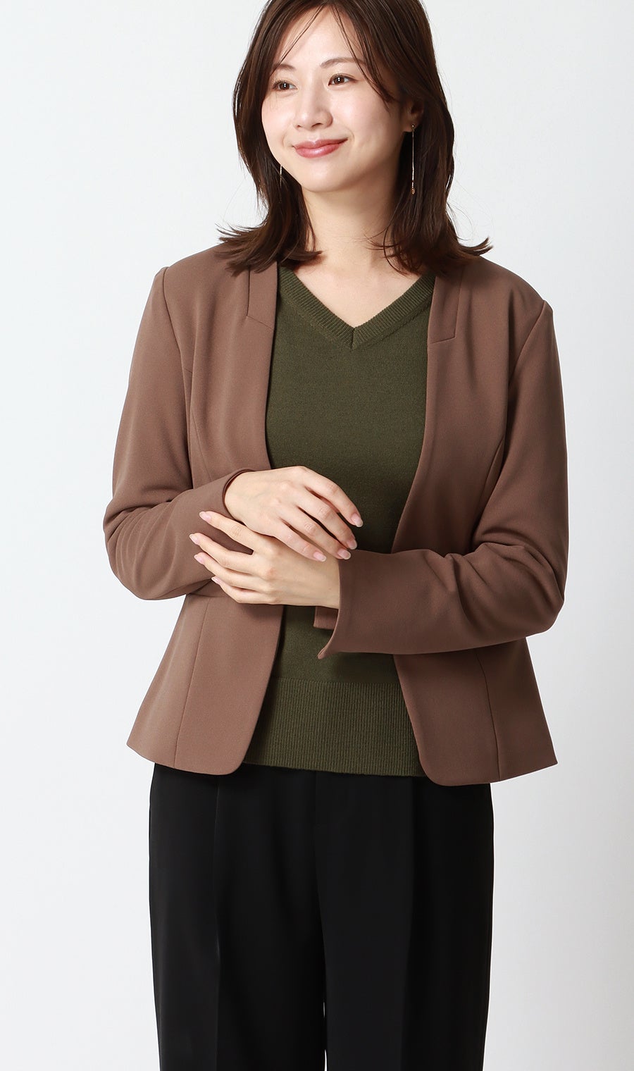 本企画は、イエベ(イエローベース)、ブルベ(ブルーベース)それぞれの肌トーンになじむ色合いを専門家の視点を取り入れ厳選しました。イエベには、温かみのあるカーキ・ベージュの2色を用意し、表情を明るく見せながら華やかな印象を演出。ブルべには、クールでクリアなグレー・ネイビーの2色で、肌の透明感と清潔感を際立たせます。これらは、ベーシックなカラーのためお手持ちのジャケットとも合わせやすく、忙しい朝にも重宝するアイテムとなっています。