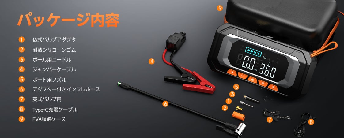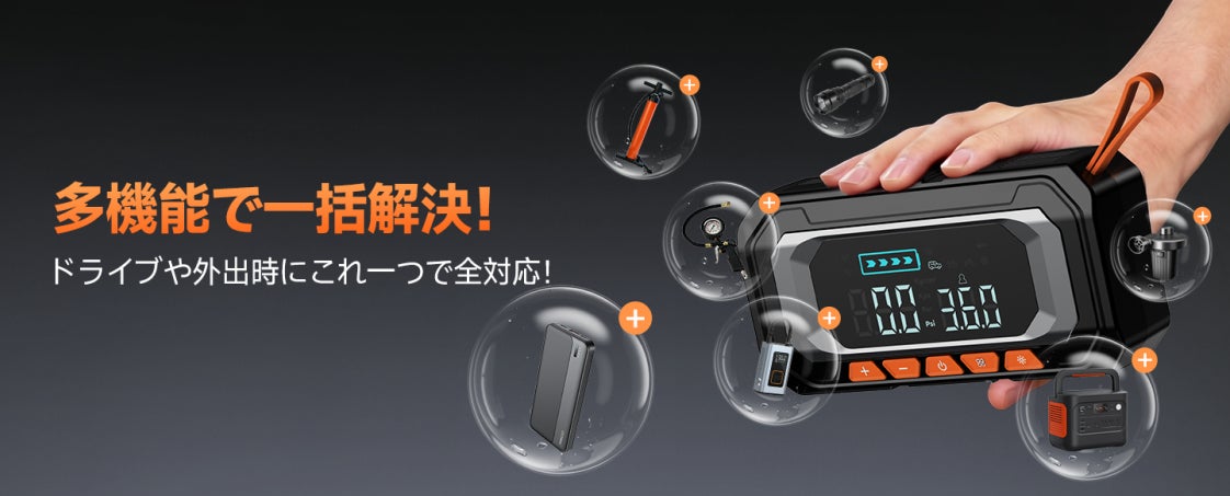 8000Aの強力な起動力と150PSIの空気入れ機能を1台に凝縮。プロ仕様の性能をコンパクトなボディで実現。