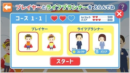 プレイヤーは将来に続く人生を歩んでいく「みらいランナー」。ライフプランナーは選んだキャラクターにより「コレクト」「バリア」それぞれのスキルを発動することで、人生の伴走者としてプレイヤーを見守り助けます。