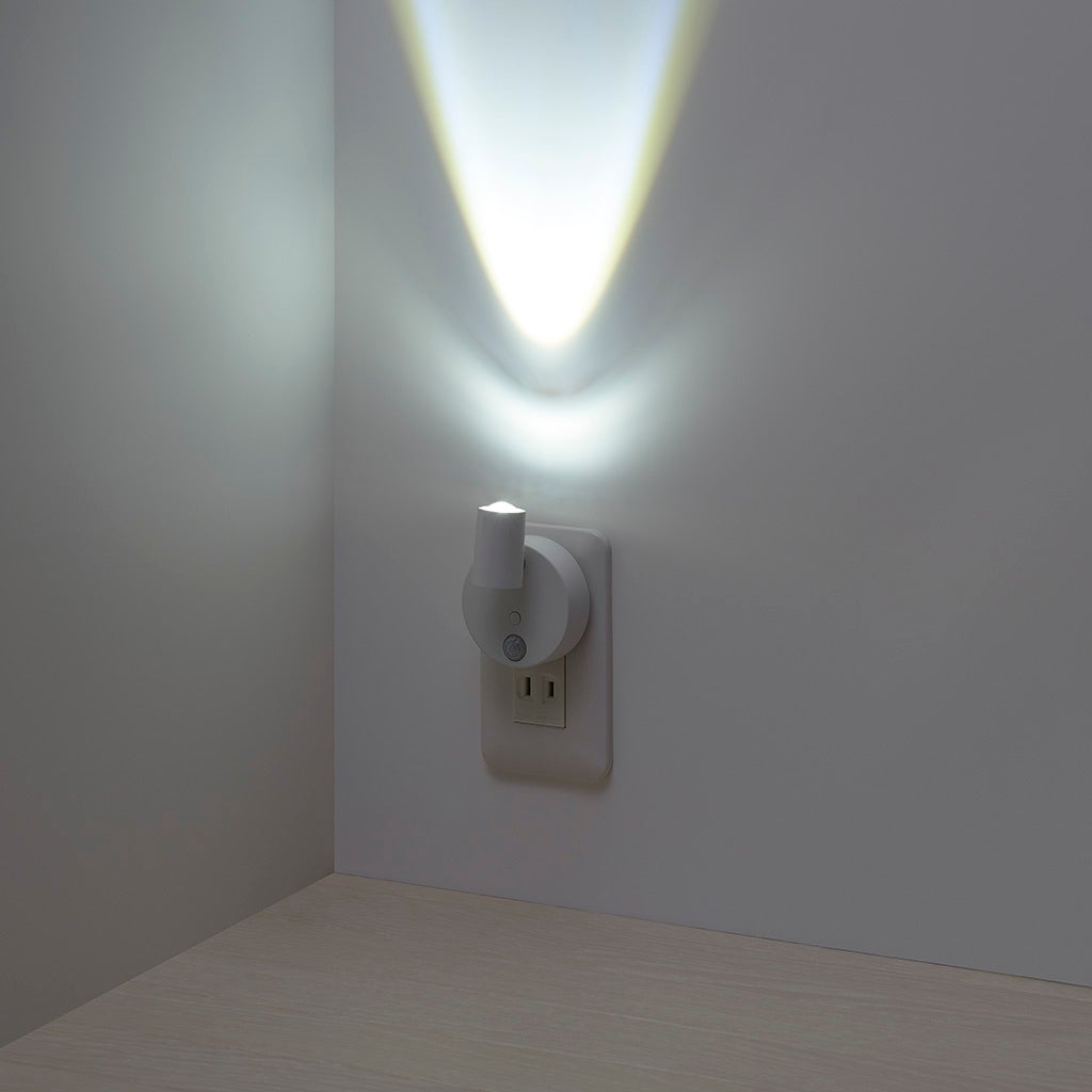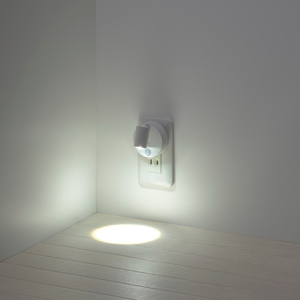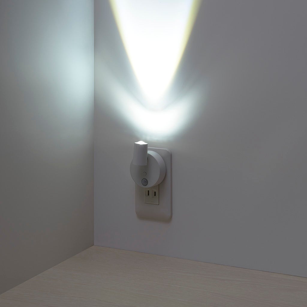 ■ コンセント式の人感明暗センサーライト。ライトの向きを自由自在に変更できます。