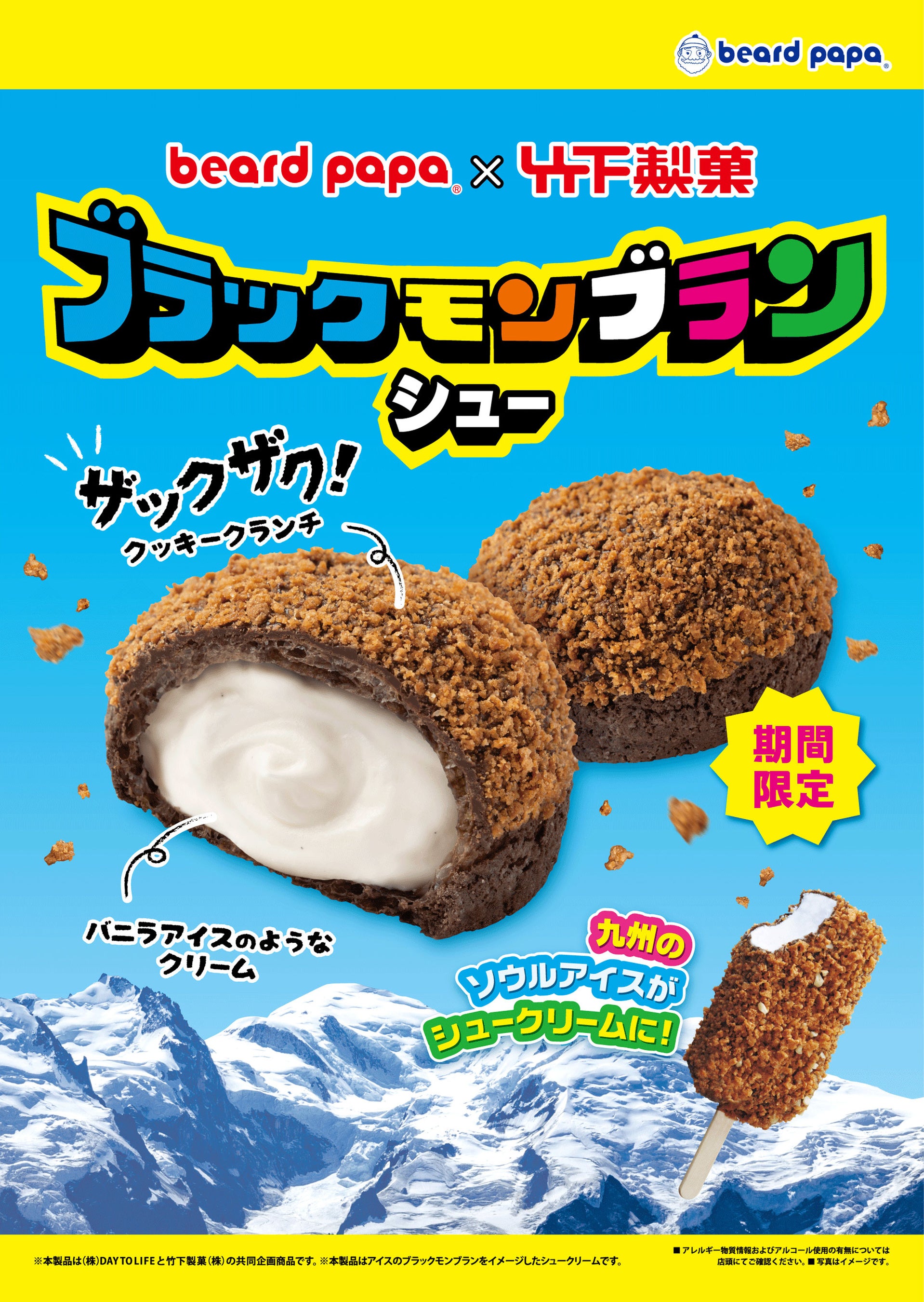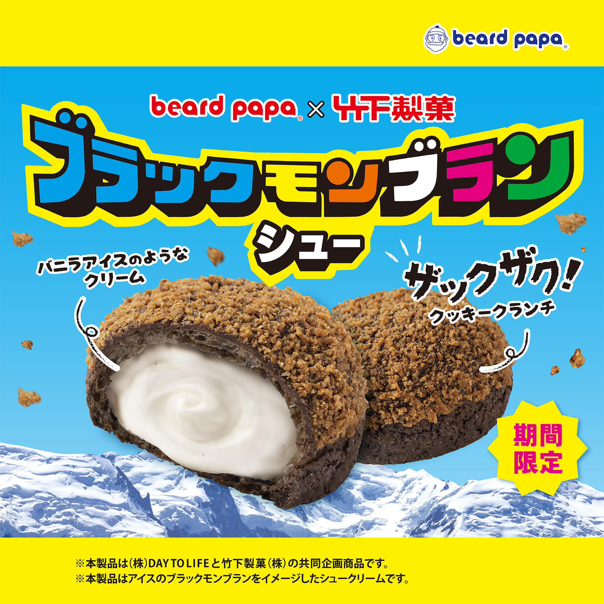 株式会社DAY TO LIFE(本社:大阪府大阪市北区、代表取締役社長:杉内健吉)が展開するシュークリーム専門店ビアードパパは、2025年6月1日(日)より、竹下製菓株式会社(本社:佐賀県小城市、代表取締役社長:竹下真由)のロングセラーアイス「ブラックモンブラン」とのコラボレーション商品“ブラックモンブランシュー”を6月限定で販売いたします。