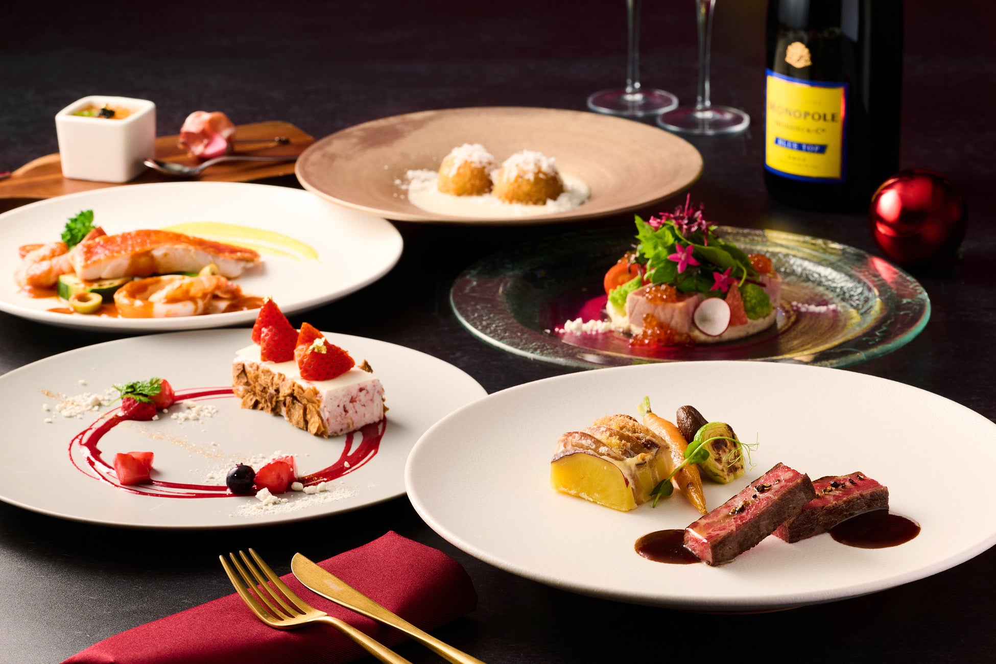 ※12月21日(土)~25日(水)は、乾杯シャンパーニュ付きで5,500円