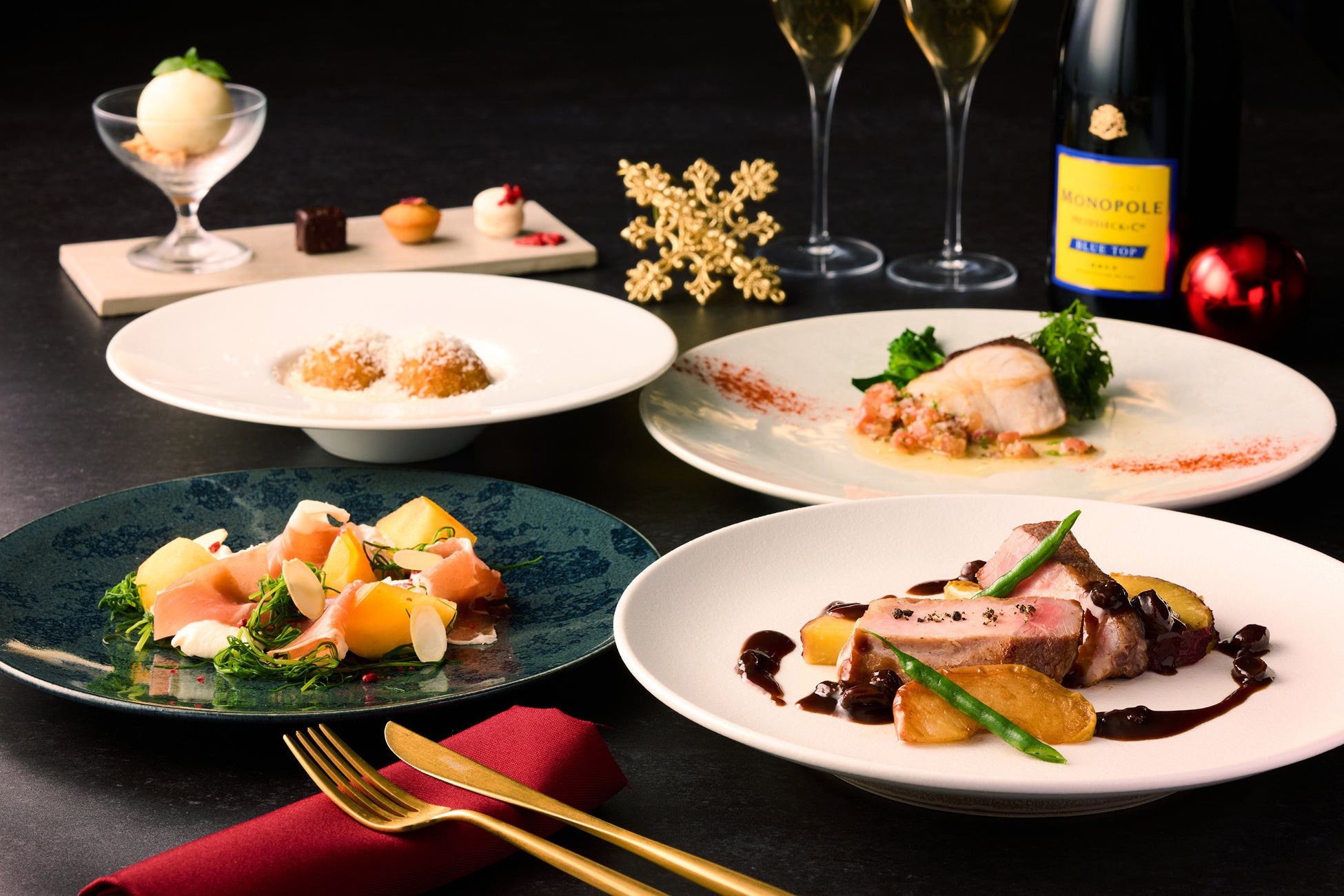 ※12月21日(土)~25日(水)は、乾杯シャンパーニュ付きで13,000円