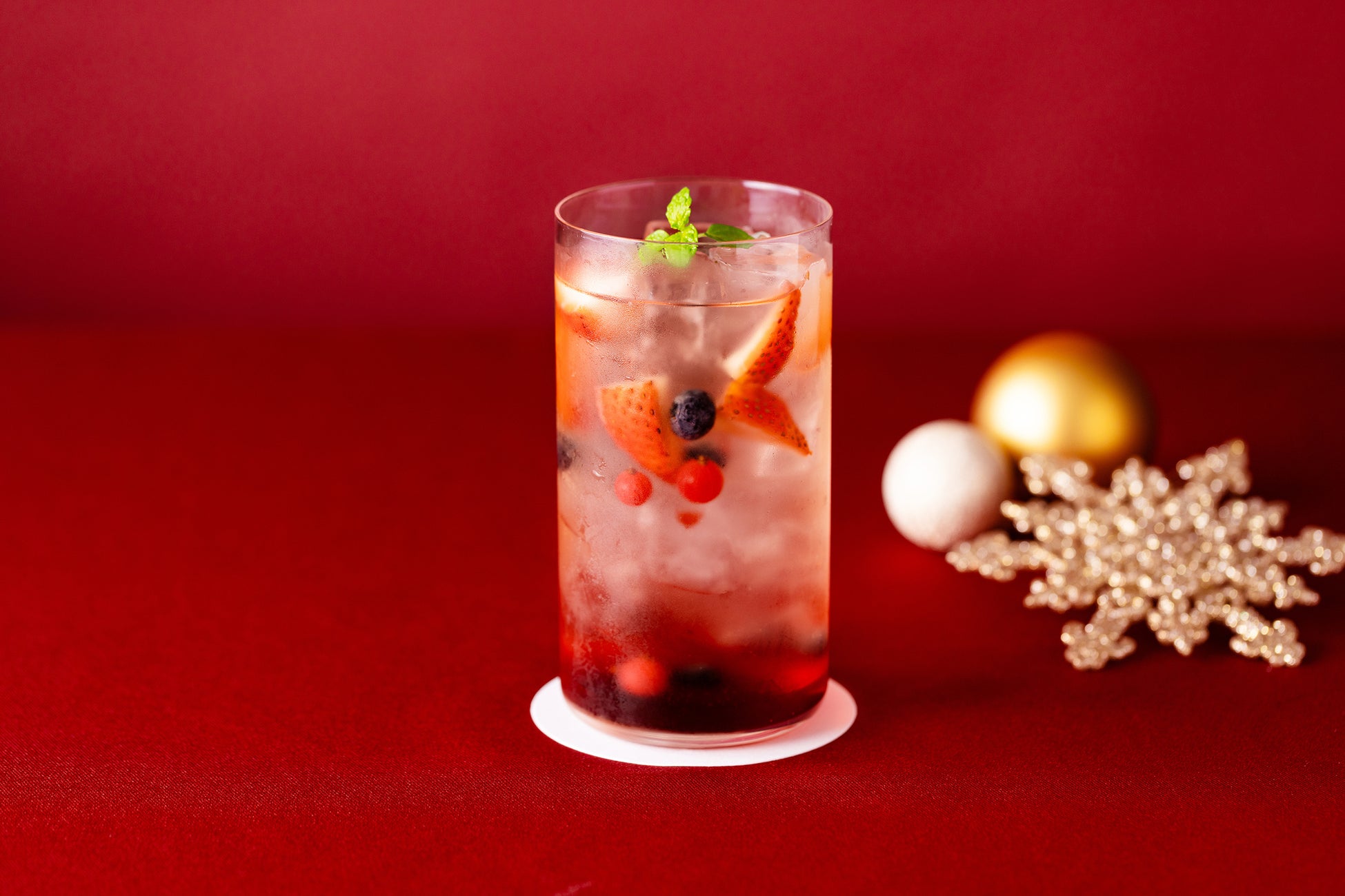 クリスマスシーズン限定コースや、限定カクテルをご用意いたします。限定コースは、国産牛や金目鯛などクリスマスシーズンならではの贅沢な食材を使ったシェフ渾身の料理です。ツリーに見立てデザインしたオードブルや、リースをイメージしたデザート、クリスマスカラーである赤色を基調にしたカクテルなど、ひと目見ただけでクリスマスを感じられる料理やドリンクが、より一層特別な夜を彩ります。 (メニューはすべて税込価格です)