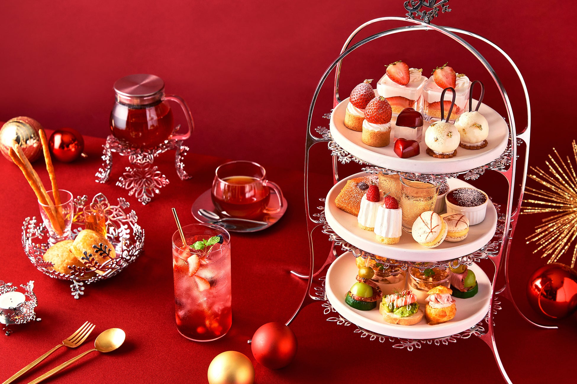 クリスマスシーズン限定の華やかに仕上げたアフタヌーンティーやパフェ、ケーキ5種、ドリンク3種が登場。街が煌めくクリスマスシーズンに、心ときめくスイーツやドリンクの数々をお楽しみください。