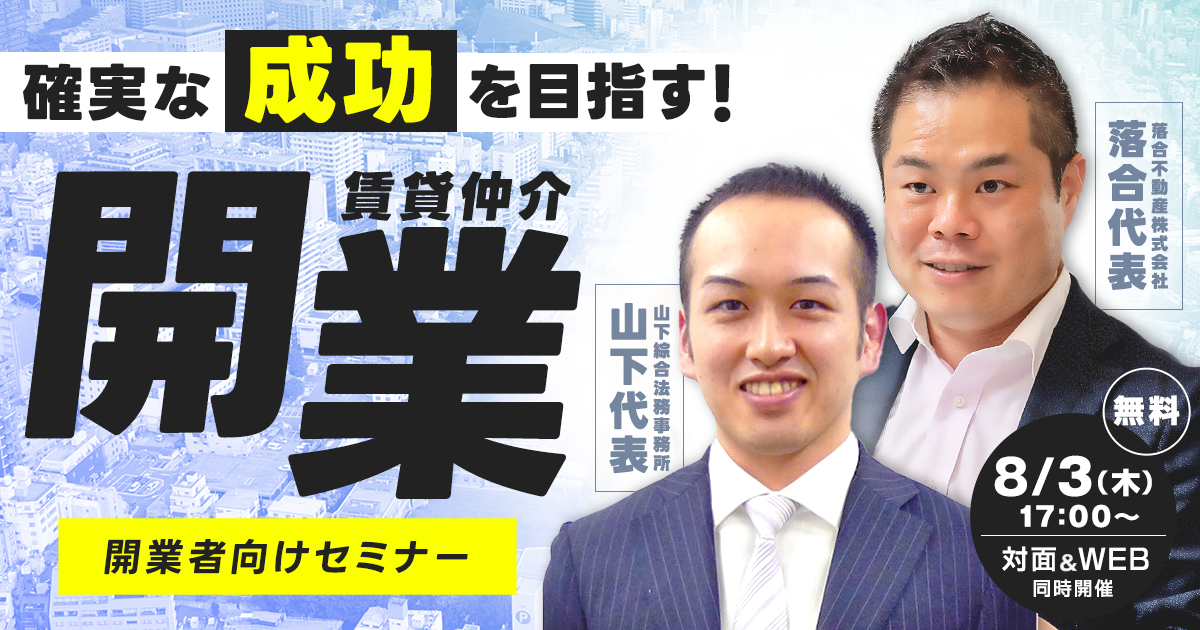 【賃貸仲介向け】ハイブリッドセミナー開催!「失敗しない不動産開業手順・資金調達&賃貸仲介業で成功する為の基礎知識」