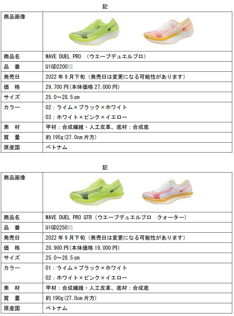 スピードランナー向けレーシングシューズ「WAVE DUEL PRO」シリーズ発売