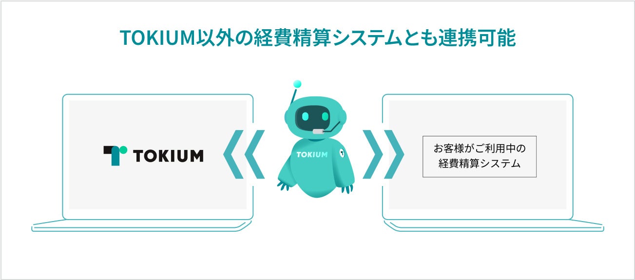 本サービスは、TOKIUM経費精算以外のシステムとの連携も可能です。既存の他社システムや自社開発のシステムを問わず、柔軟に接続し、幅広いお客様にご利用いただけます。