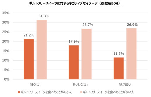 ◆ギルトフリースイーツを「食べたことがある人」は「食べたことがない人」と比べ、『味が薄い』などのネガティブイメージが15.4%も低い結果に!