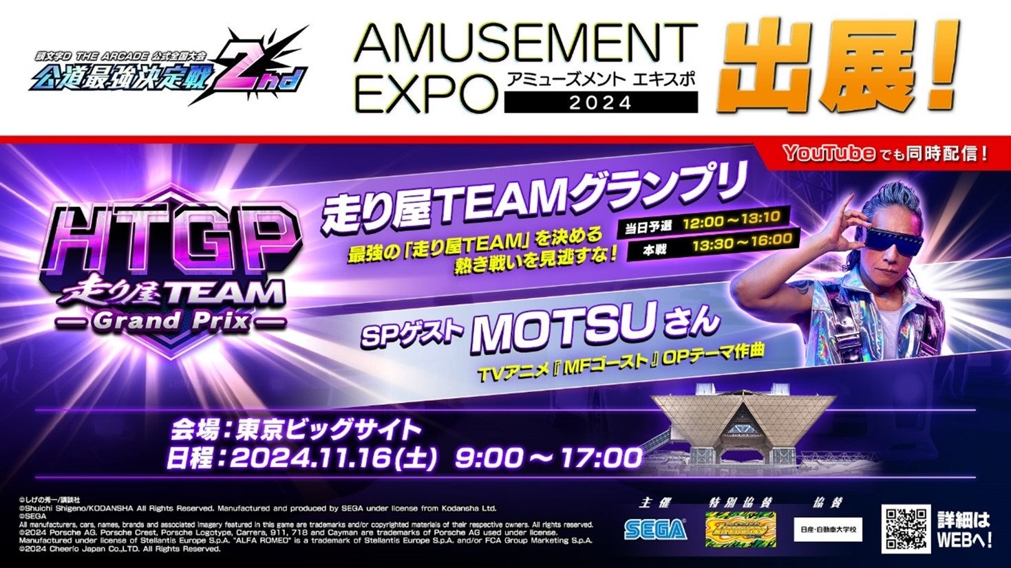 決勝戦にはスペシャルゲストとして、現在『頭文字DAC』とコラボ開催中のTVアニメ『MFゴースト』でオープニングテーマを担当するアーティスト・MOTSU氏が登場!スペシャルDJで大会を盛り上げます。大会終了後には、飛び入り参加OKの、豪華ノベルティを賞品としたじゃんけん大会も実施!