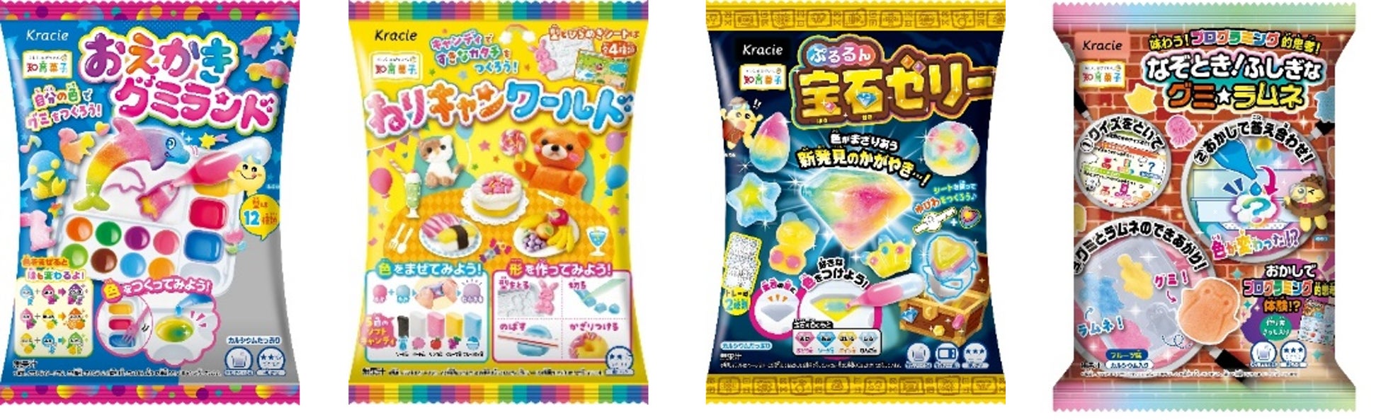2024年の夏は、子どもの創造力や造形力を高め、夢中になれる「アート」をテーマに、「おえかきグミランド」「ねりキャンワールド」をリニューアルし、「ぷるるん宝石ゼリー」が新登場します。また、クイズを解きながら作ることで、プログラミング的思考力を高める「なぞとき!ふしぎなグミラムネ」も発売いたします。オリジナルデザインのお菓子を作ってみたり、ものの組み合わせをお菓子で答え合わせしながら楽しむことで、たくさんの夢中顔を引き出す商品を展開していきます。